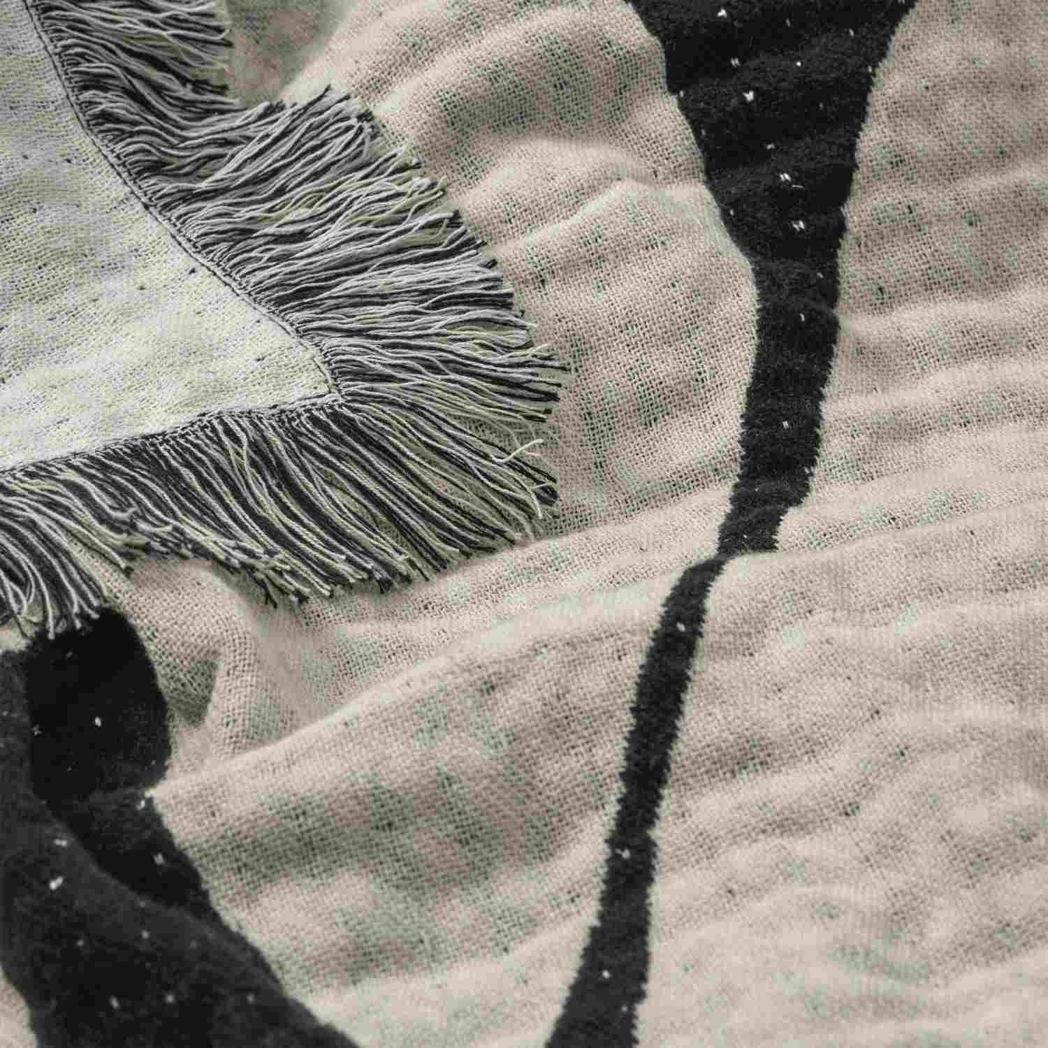 Baumwolle ist ein Naturmaterial, das für seine weiche Haptik und atmungsaktiven Eigenschaften geschätzt wird. Diese Decke fühlt sich angenehm auf der Haut an und eignet sich perfekt für den ganzjährigen Gebrauch – sei es als leichte Zudecke an warmen Sommerabenden oder als wärmendes Extra während kühler Herbst- und Winternächte. Die zeitlose schwarze Farbe verleiht deinem Zuhause eine stilreine, moderne Note und lässt sich mühelos mit unterschiedlichen Farben und Mustern kombinieren.