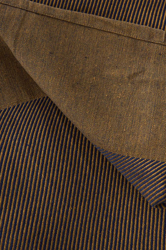 Mit dieser großzügigen Decke von Studio About holst du dir ein Stück skandinavische Designkunst ins Haus, die Funktionalität und grafische Ästhetik auf beeindruckende Weise vereint. Die Farbkombination Dunkelblau/Ocker entsteht durch sorgfältige Webtechnik und bewusste Farbwahl, wodurch ein visueller Kontrast mit Tiefe und Charakter geschaffen wird. Das charakteristische Stripe Weave-Muster unterstreicht die Begegnung zwischen der tiefen blauen Nuance und der warmen Ockerfarbe und erzeugt einen Ausdruck von Bewegung und Balance, ohne den Raum zu dominieren.Die Decke besteht aus einer dicht gewebten Baumwollmischung mit 80% Baumwolle und 20% Polyester. Diese Zusammensetzung verleiht ihr eine angenehme Weichheit und einen natürlichen Fall, der sie ideal für den täglichen Gebrauch macht. Mit ihren großzügigen Maßen von 260 x 260 cm bedeckt sie ein Doppelbett mit guter Marge, doch ihre Vielseitigkeit reicht weit über das Schlafzimmer hinaus. Du kannst sie ebenso natürlich über dein Sofa drapieren, auf eine Daybed legen oder als dekoratives Element in einer gemütlichen Ecke einsetzen. Die Größe ermöglicht es dir, die Decke auf verschiedene Weisen zu falten und zu arrangieren, je nach Bedarf und gewünschtem Ausdruck.