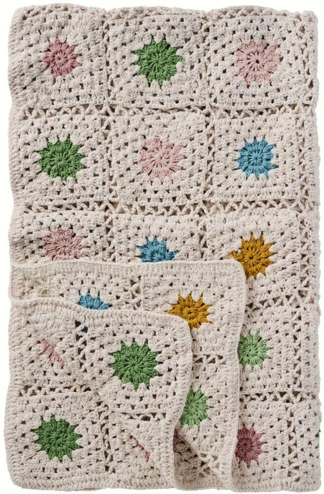 Mit dieser handgehäkelten Decke von Ib Laursen holst du dir authentische Handwerkskunst und skandinavische Gemütlichkeit direkt in dein Zuhause. Das wunderschöne Blütenmuster in Creme und mehrfarbigen Nuancen schafft eine perfekte Balance zwischen Vintage-Charme und modernem skandinavischem Design. Die einzigartige Häkeltechnik verleiht der Decke eine herrliche Textur, die nicht nur einladend aussieht, sondern sich auch angenehm weich auf der Haut anfühlt.Das hochwertige Baumwollmaterial garantiert optimalen Komfort und Atmungsaktivität, während die klassische Größe von 130x170 cm sie ideal für das Sofa, das Bett oder als dekoratives Element über einem Sessel macht. Die handgearbeiteten Details im Blütenmuster verleihen jeder Einrichtung Persönlichkeit und Authentizität, egal ob dein Zuhause von modernem Minimalismus oder ländlicher Gemütlichkeit geprägt ist.
