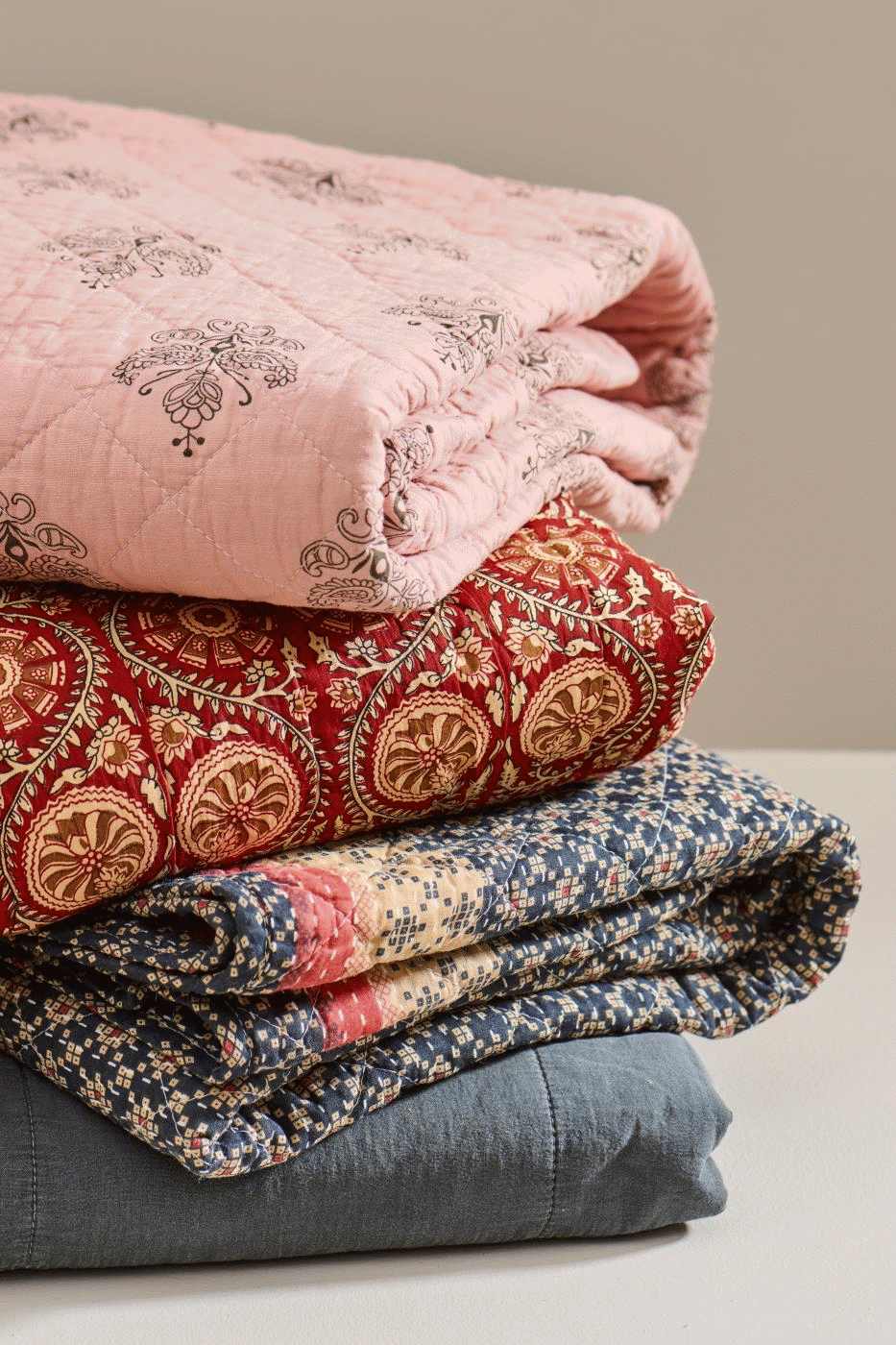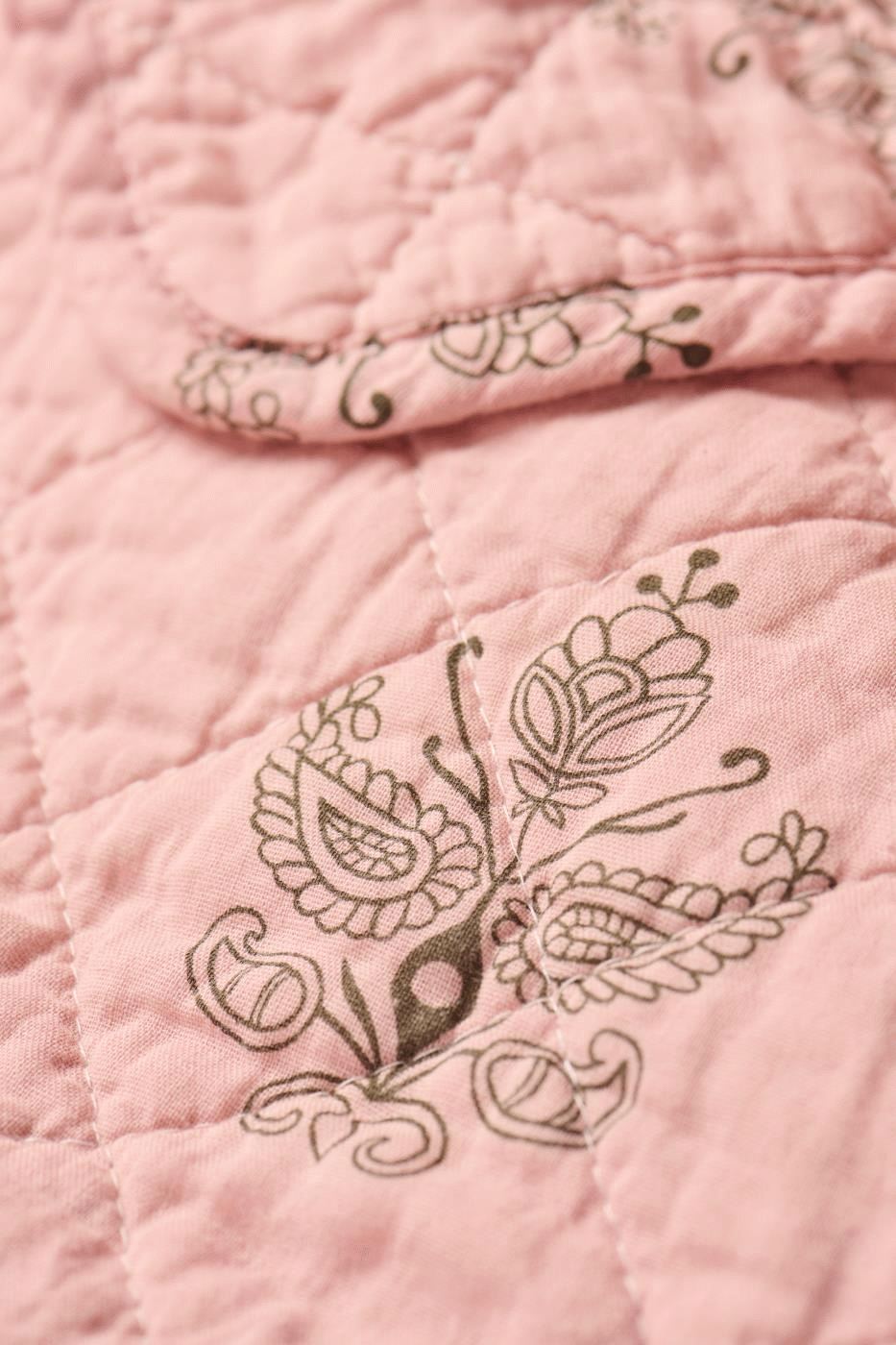 Diese wunderschöne Steppdecke von Ib Laursen verwandelt dein Zuhause in eine Oase der Gemütlichkeit und bringt mit ihrer eleganten Farbkombination aus klassischen Rosa-Nuancen und sophistizierten dunkelgrauen Blockmustern sofort Wärme und Charakter in jeden Raum. Das handverlesene Design schöpft seine Inspiration aus traditionellen indischen Saris, wobei alte Muster neu interpretiert wurden, um einen einzigartigen orientalischen Ausdruck mit reichen Details und zeitloser Ausstrahlung zu schaffen.Die hochwertige Verarbeitung aus 100% Baumwolle garantiert dir nicht nur außergewöhnliche Haltbarkeit, sondern auch ein angenehm weiches Gefühl auf der Haut. Die sorgfältig ausgewählte Füllung aus 90% Baumwolle und 10% Polyester bietet dir die perfekte Balance zwischen Komfort und praktischer Funktionalität. Diese durchdachte Materialzusammensetzung macht die Steppdecke besonders pflegeleicht und sorgt dafür, dass sie auch nach häufiger Nutzung ihre Form und Fülle behält.