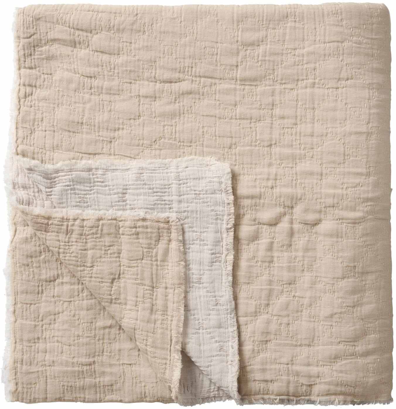 Die gedämpften Farben in Natur und Off-White schaffen eine harmonische Balance, die perfekt sowohl zu modernen als auch zu klassischen Schlafzimmern passt. Diese neutrale Farbpalette macht es dir leicht, den Überwurf mit vorhandener Bettwäsche und Kissen zu kombinieren. Mit seinen großzügigen Maßen von 240x240 cm bedeckt dieser Bettüberwurf sowohl Doppelbetten als auch größere Betten mit Stil.