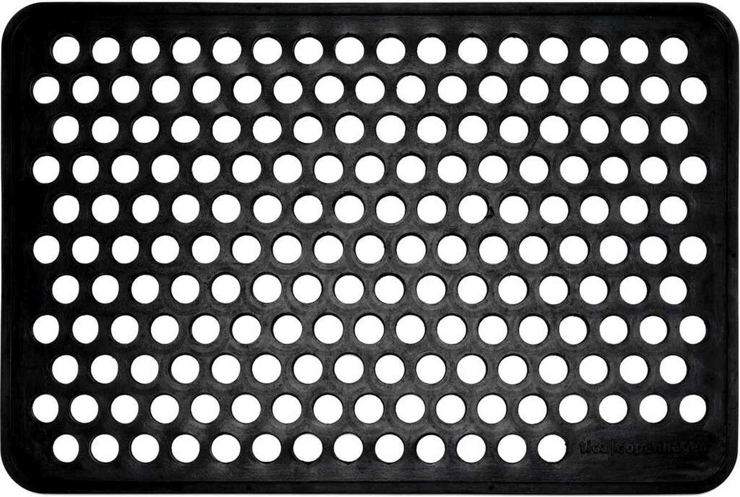 Mit dieser praktischen Schmutzfangmatte von Tica Copenhagen holst du dir eine durchdachte Lösung für deine Eingangstür ins Haus, die Funktionalität und skandinavisches Design gekonnt vereint. Die Matte in elegantem Schwarz mit ihrem charakteristischen Dot-Muster sorgt nicht nur für einen einladenden ersten Eindruck, sondern hält dein Zuhause auch zuverlässig sauber und ordentlich.Das robuste Gummimaterial verleiht der Matte ein solides Gewicht und eine Stabilität, die dafür sorgt, dass sie genau dort bleibt, wo du sie hinlegst. Anders als viele herkömmliche Fußmatten, die ständig auf dem Boden herumrutschen, bleibt diese Matte dank ihrer massiven Konstruktion und rutschfesten Unterseite fest an ihrem Platz. Egal ob auf Fliesen, Holz oder anderen Bodenbelägen – die Matte bietet dir auf jedem Untergrund sicheren Halt.