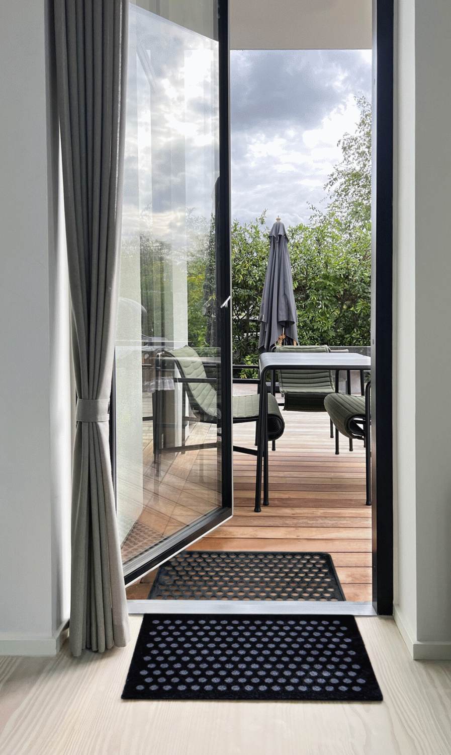 Das zeitlose und funktionale Design mit dem grafischen Dot-Muster sieht nicht nur ansprechend aus, sondern fängt auch effektiv Schmutz, Staub und Feuchtigkeit von deinen Schuhen auf. Mit ihrem Fokus auf Langlebigkeit ist die Matte sowohl für den Innen- als auch für den Außenbereich geeignet, was sie zu einer vielseitigen Lösung für deinen Eingangsbereich, die Terrasse oder den Balkon macht.