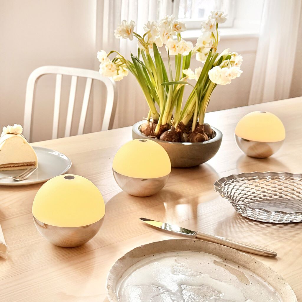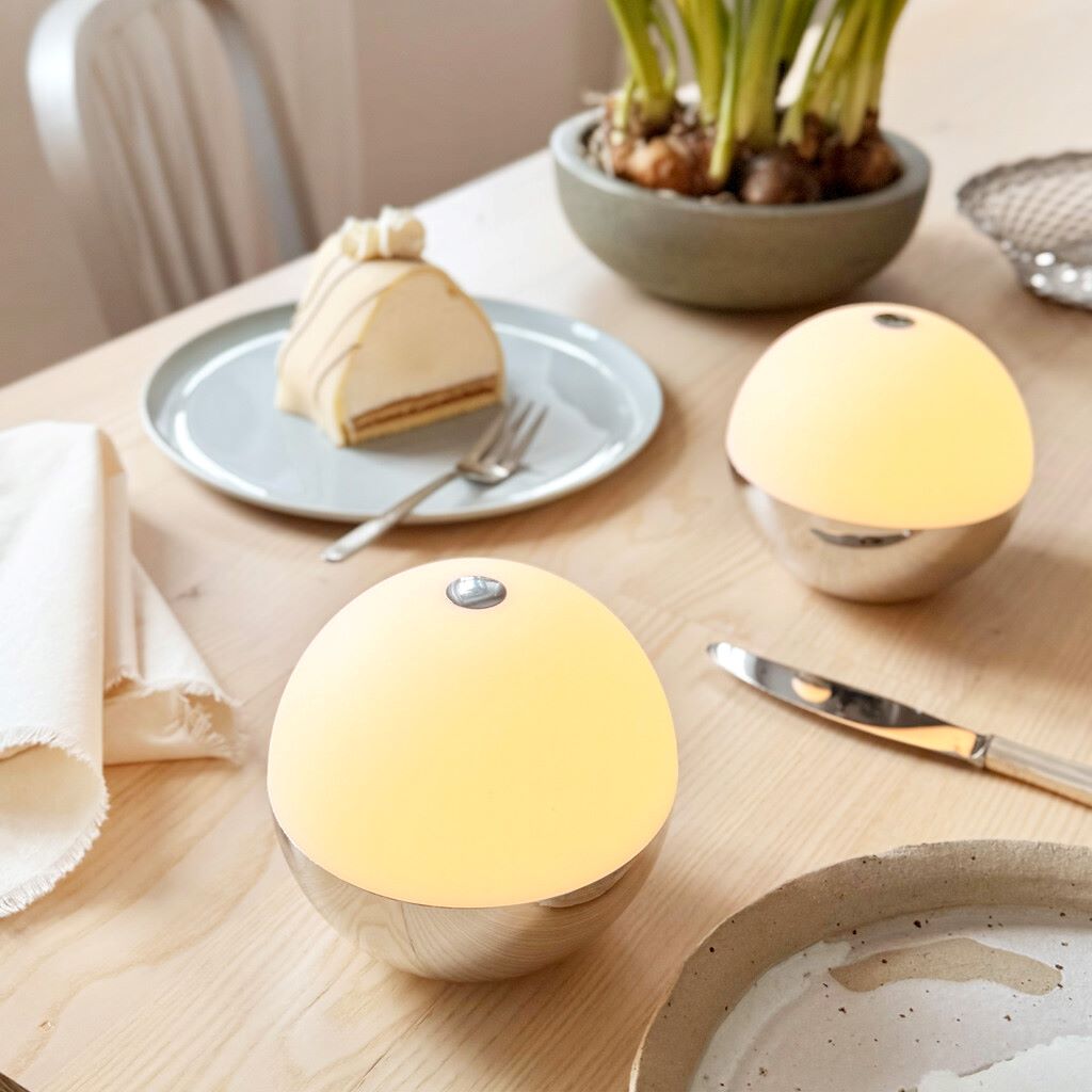 Dank der kabellosen Konstruktion genießt du maximale Flexibilität bei der Platzierung - sowohl im Innenbereich als auch im Freien. Die kompakte Größe von nur 11 cm Höhe macht die Leuchten zu vielseitigen Begleitern für jeden Raum und jede Gelegenheit. Das hochwertige Chrom-Finish verleiht deinem Zuhause einen raffinierten Touch und unterstreicht die skandinavische Designphilosophie von Qualität und Funktionalität.