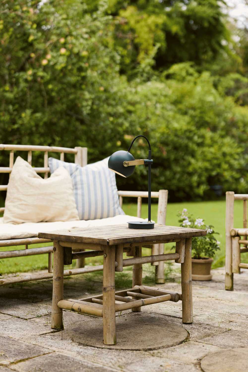 Die hochwertige Konstruktion aus Metall und Holz in dunkelgrüner Ausführung unterstreicht die skandinavische Designtradition und Qualität. Ob am Esstisch, im Garten, in der Arbeitsecke oder in der Kuschelecke – die DC Portable passt sich flexibel deinen Wünschen an.