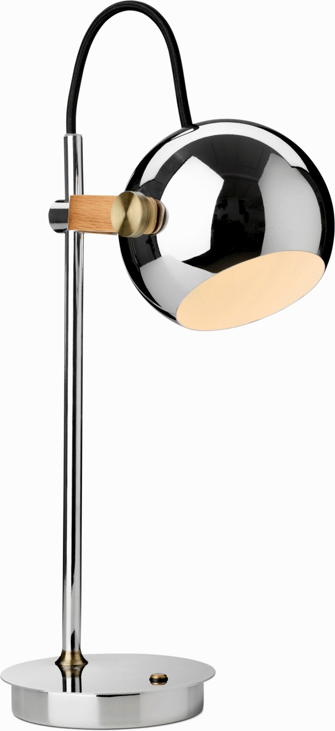 Das polierte Chrome-Finish verleiht der kompakten Lampe eine zeitlose Ästhetik, die sich nahtlos in moderne skandinavische Interieurs einfügt. Die robuste Konstruktion aus Metall und Holz garantiert dir nicht nur Langlebigkeit, sondern auch stilvolle Elegance in jedem Raum. Mit einer Höhe von 35 cm und einem Durchmesser von 12 cm passt sie perfekt auf jeden Nachttisch, Esstisch oder in jede Ecke, die du beleuchten möchtest.