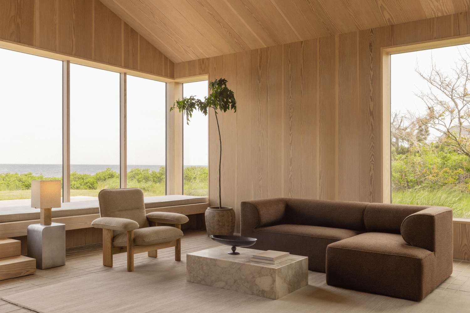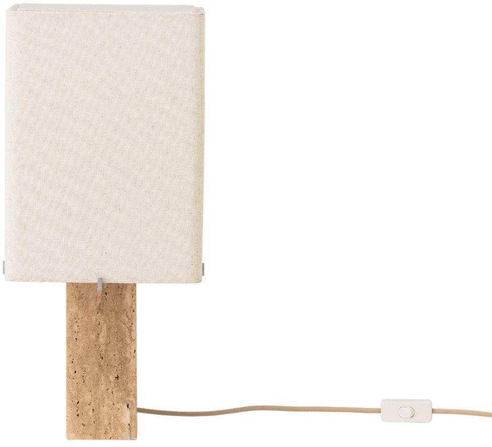 Das Design spiegelt Audo Copenhagens charakteristischen Ansatz des skandinavischen Minimalismus wider, bei dem jedes Element sorgfältig durchdacht ist. Die gedämpfte Farbpalette schafft Harmonie zwischen den verschiedenen Materialien der Lampe - Travertin, Aluminium und Leinen - während Details wie das sandfarbene Kabel und der diskrete Schalter die reine Ästhetik der Lampe unterstreichen.