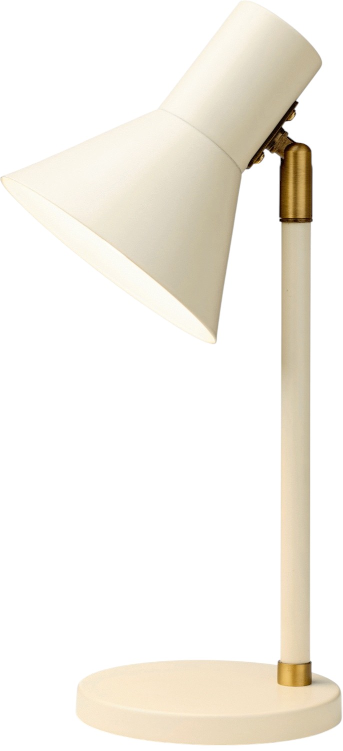 Die hochwertige Metallkonstruktion in cremefarbenen Nuancen schafft eine warme und einladende Atmosphäre, während die raffinierten Messingdetails am Gelenk und zwischen Basis und Stamm einen sophistizierten Akzent setzen. Diese durchdachte Materialwahl unterstreicht die skandinavische Designphilosophie von Qualität und Handwerkskunst.