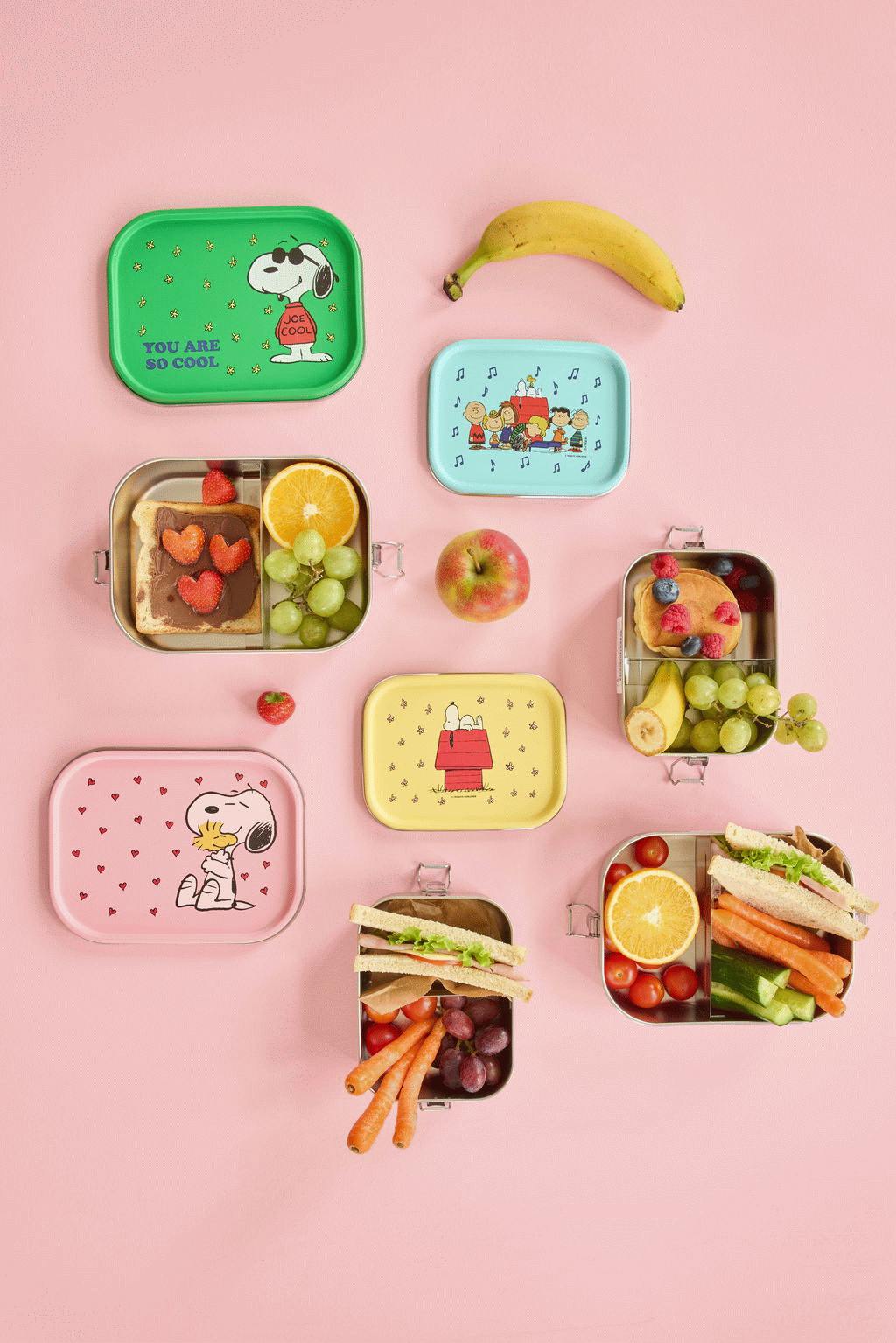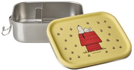 - Deckel: Gelbes Silikon mit nostalgischem Peanuts-Motiv