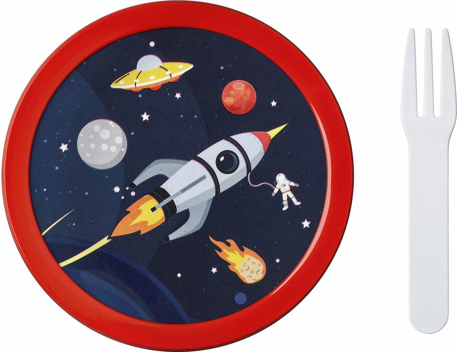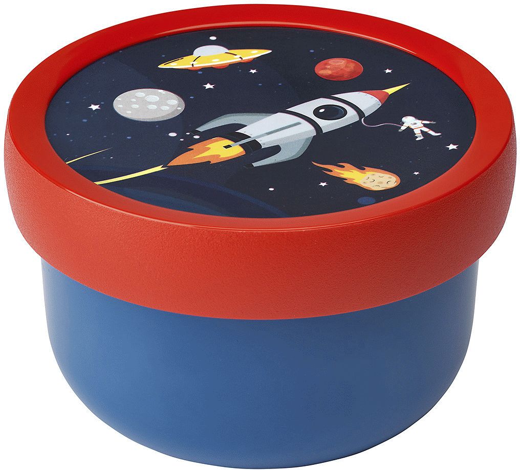 Diese kompakte Brotdose von Mepal bringt das Weltall direkt in die Pausenbox deines Kindes und macht jede Mahlzeit zu einem kleinen Abenteuer. Mit ihrem faszinierenden Space-Design auf dem Deckel verwandelt sich das tägliche Pausenbrot in eine aufregende Entdeckungsreise durchs Universum. Die runde Form mit 300 ml Fassungsvermögen ist ideal dimensioniert für Obst, gesunde Snacks oder kleinere Mahlzeiten und passt perfekt in jeden Schulranzen oder Kindergartenbeutel.Das durchdachte, kinderfreundliche Design ermöglicht es bereits den Kleinsten, die Dose selbstständig zu öffnen und zu schließen, was die Eigenständigkeit im Alltag fördert. Der vollständig dichte Verschluss sorgt dafür, dass Obst und Snacks den ganzen Tag über frisch und saftig bleiben, während die mitgelieferte praktische Gabel das Essen noch angenehmer macht.