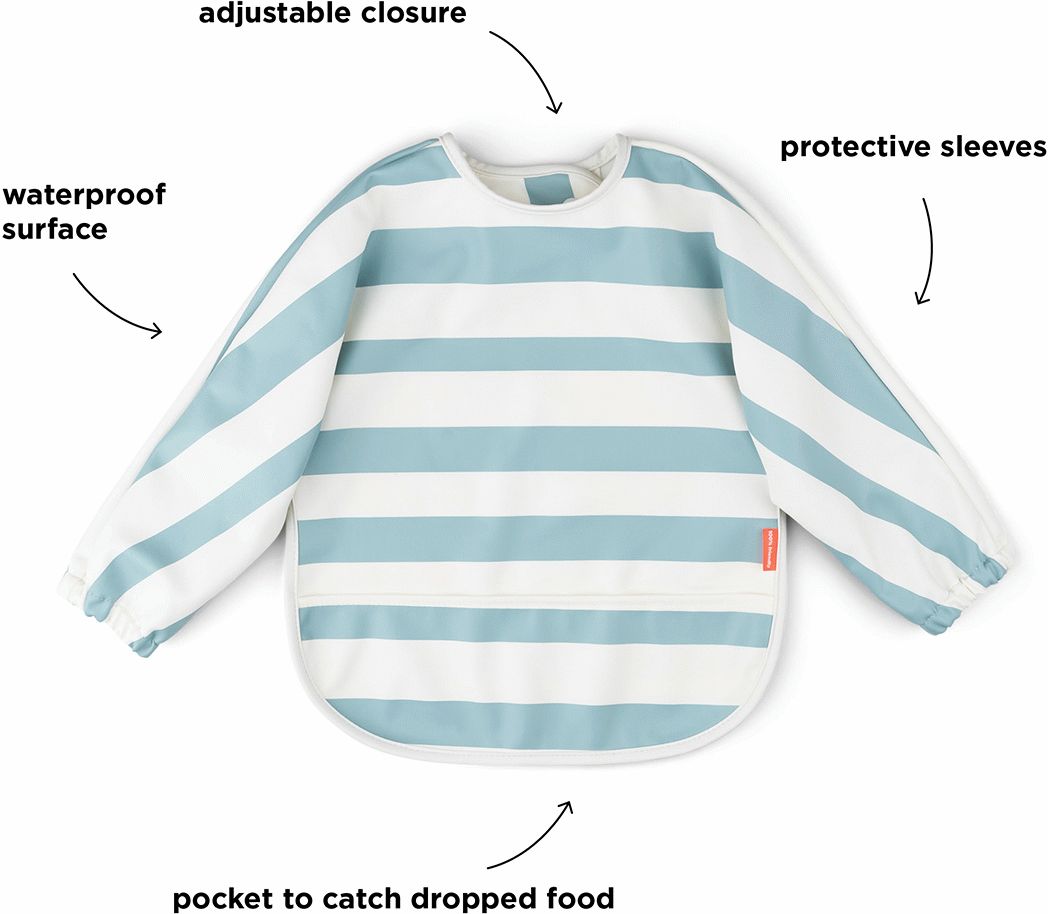 Done by Deer Stripes Langarm Lätzchen mit Tasche, Blau