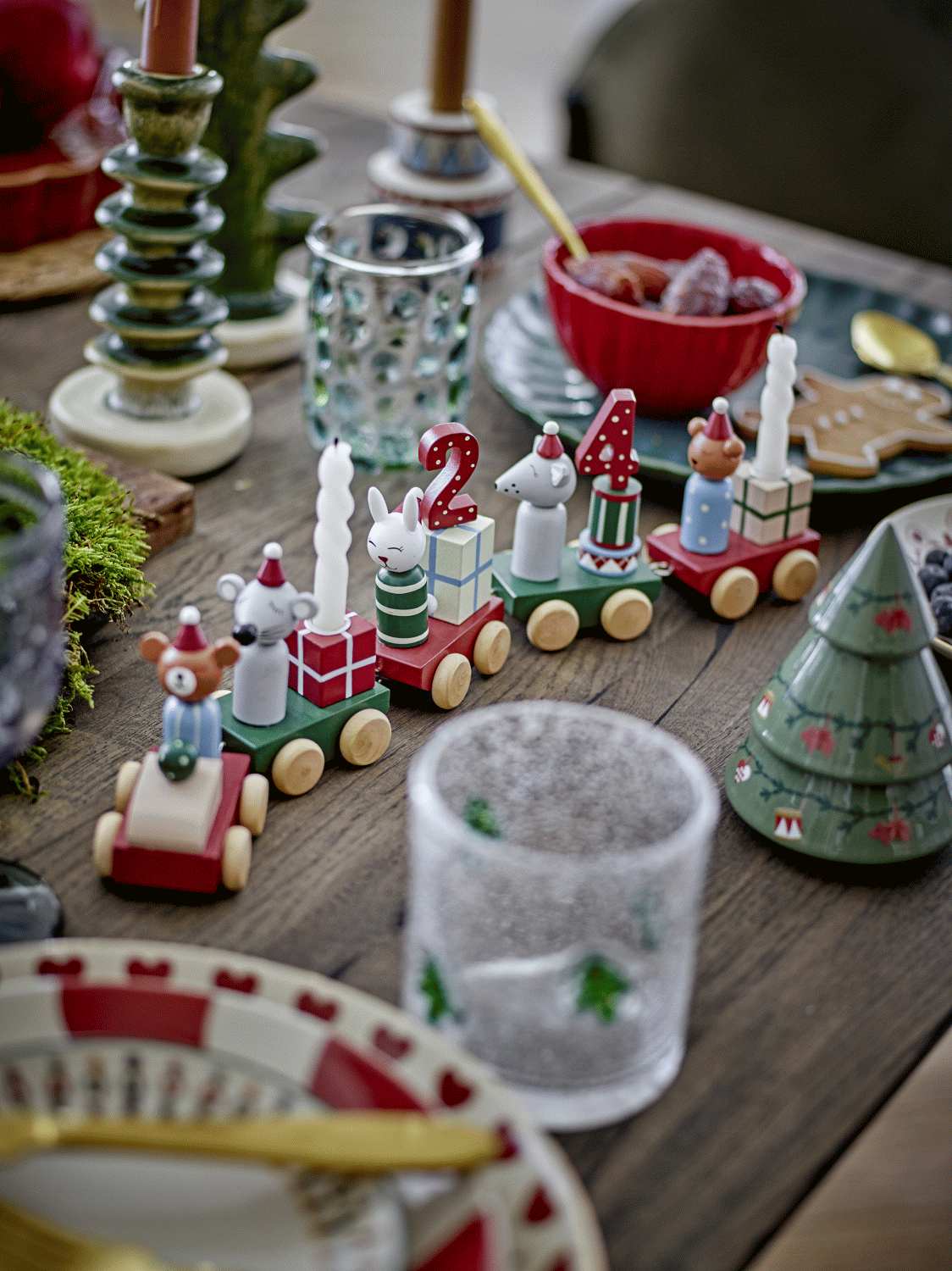 Mit diesem bezaubernden Adventskalenderzug von Bloomingville holst du dir die skandinavische Weihnachtstradition direkt in dein Zuhause. Der Junaid Adventskalenderzug vereint zeitloses dänisches Design mit nachhaltiger Handwerkskunst und wird zur perfekten Grundlage für unvergessliche Weihnachtsmomente mit der ganzen Familie.Das festliche rote Weihnachtszug-Set besteht aus fünf individuell gestalteten Waggons, die mit liebevoll detaillierten Figuren verziert sind und zauberhafte Weihnachtsgeschichten erzählen. Jeder Waggon trägt zur magischen Atmosphäre bei und verwandelt dein Zuhause in eine weihnachtliche Märchenwelt. Die hochwertige Verarbeitung aus FSC-zertifiziertem MDF-Holz garantiert nicht nur außergewöhnliche Qualität, sondern auch verantwortungsvolle Nachhaltigkeit – ein Kauf, bei dem du dich rundum wohlfühlen kannst.