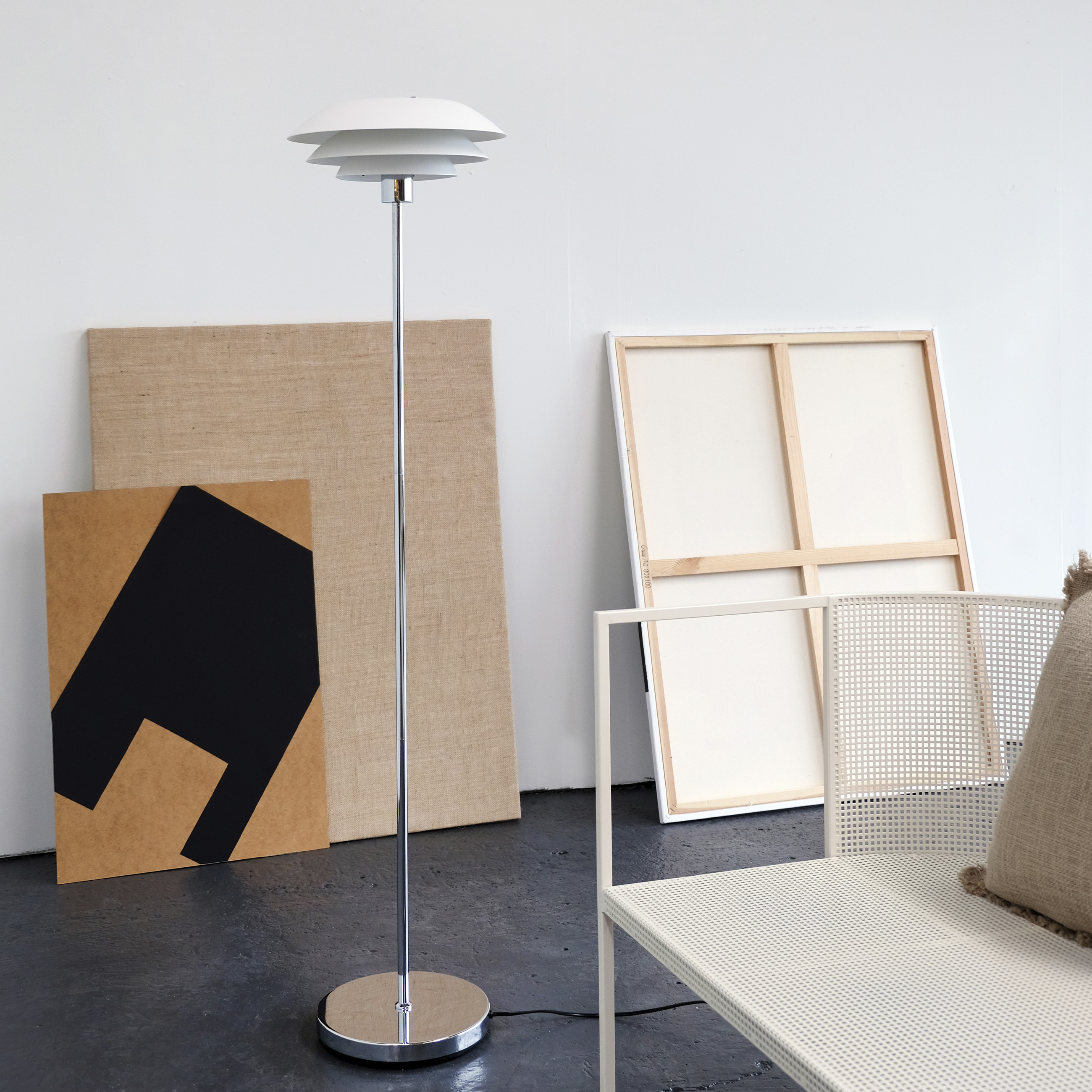 Diese elegante Stehlampe von Dyberg Larsen verbindet klassische Elegance mit moderner Schlichtheit und wird so zu einem zeitlosen Designelement in deinem Zuhause. Mit ihrer imposanten Höhe von 133 cm und einem Schirmdurchmesser von 31 cm schafft die DL31 eine perfekte Balance zwischen Funktionalität und Ästhetik. Der weiße Schirm mit den raffinierten Chromdetails reflektiert das Licht wunderschön und erzeugt einen sanften, angenehmen Schein, der jeden Raum verwandeln kann.Entworfen von der renommierten dänischen Marke Dyberg Larsen, repräsentiert die DL31-Serie die Essenz skandinavischer Designphilosophie - klare Linien, Einfachheit und höchste Qualität. Die harmonische Form der Lampe macht sie zu einem vielseitigen Begleiter für alle Einrichtungsstile, ob dein Zuhause minimalistisch, modern oder klassisch gestaltet ist.