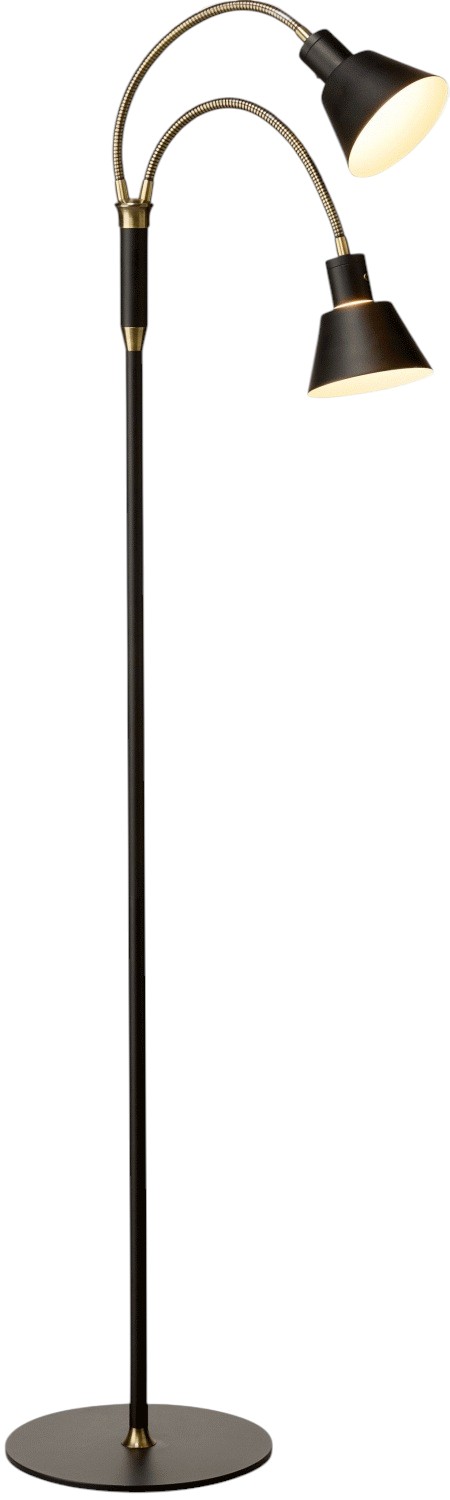 Mit ihren beiden flexiblen Armen bietet dir diese Stehlampe maximale Flexibilität bei der Lichtausrichtung. Du kannst das Licht präzise dorthin lenken, wo du es gerade benötigst – ob zum konzentrierten Arbeiten, entspannten Lesen oder als atmosphärische Beleuchtung für gesellige Abende. Die schwarzlackierte Metalloberfläche verleiht der Lampe einen minimalistischen und sophistizierten Charakter, der sich harmonisch in moderne Einrichtungsstile einfügt.