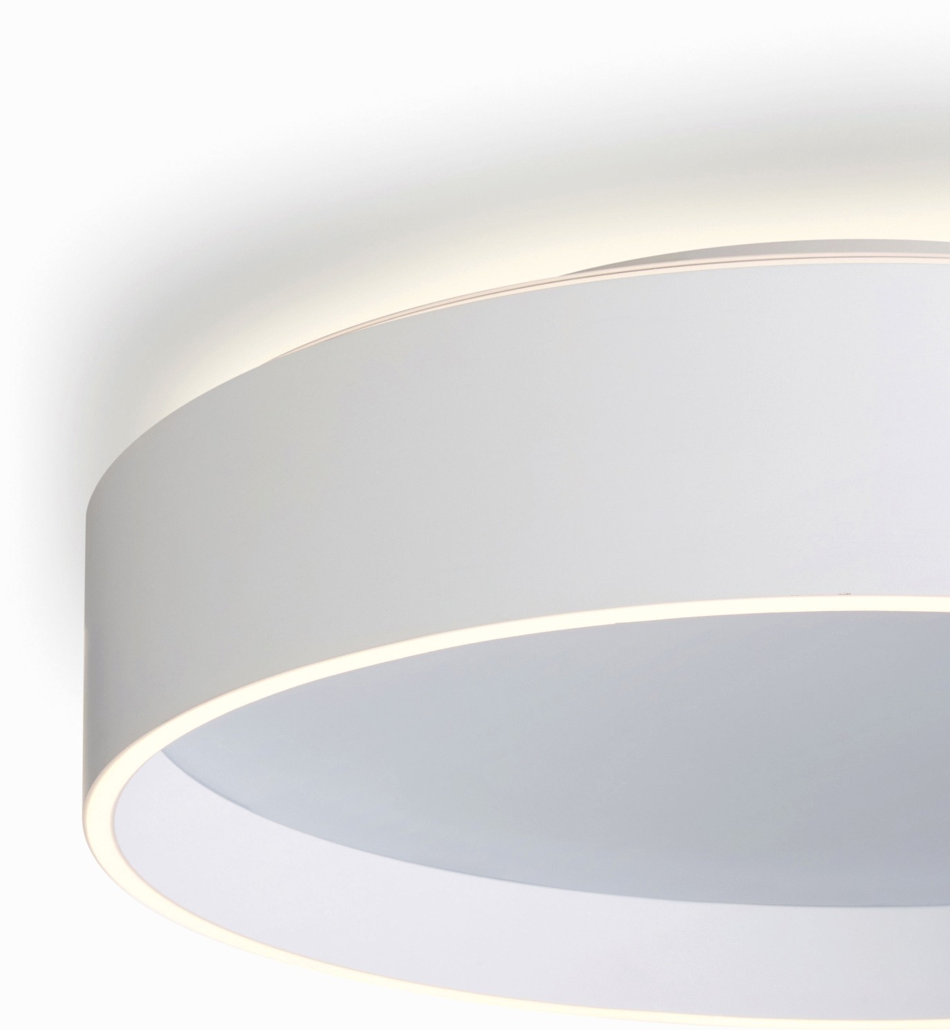 Die kraftvolle 40W LED-Lichtquelle erzeugt beeindruckende 1354 Lumen und taucht deine Räume in warmes, behagliches Licht mit 2700 Kelvin. Der charakteristische dekorative Ring um die Lichtquelle verleiht der Leuchte ein exklusives Designelement, während die mattweiße Oberfläche sich harmonisch in jeden Einrichtungsstil einfügt. Mit ihren kompakten Abmessungen von 42 cm Durchmesser und nur 10 cm Höhe eignet sie sich perfekt für große und kleine Räume gleichermaßen.