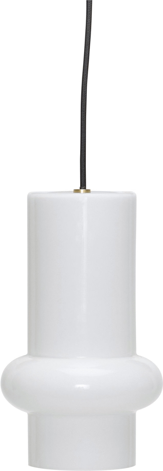 Mit dieser Pendelleuchte holst du dir ein Stück zeitlose Eleganz mit unverwechselbarem Retro-Charme direkt in dein Zuhause. Die Pilule Pendel Down von Hübsch vereint klassisches Handwerk mit modernem skandinavischem Design und verleiht jedem Raum sofort Persönlichkeit und Charakter. Ihre abgerundete Form aus glänzendem weißem Opalglas wird durch raffinierte Messingdetails veredelt, die Wärme und Exklusivität ausstrahlen. Das kontrastierende schwarze Stoffkabel unterstreicht den grafischen Ausdruck der Leuchte und verleiht ihr eine zusätzliche visuelle Tiefe, die sofort ins Auge fällt.Das Opalglas diffundiert das Licht sanft und gleichmäßig, wodurch eine angenehme Beleuchtung entsteht, die sowohl funktional als auch stimmungsvoll ist. Ob über deinem Esstisch, im Eingangsbereich oder als Teil eines größeren Beleuchtungskonzepts – diese Pendelleuchte fügt sich harmonisch in verschiedene Wohnbereiche ein. Besonders reizvoll ist die Möglichkeit, mehrere Leuchten in unterschiedlichen Höhen zu kombinieren. So schaffst du ein dynamisches, persönliches Arrangement, das sich perfekt an die Architektur deines Raumes und deinen individuellen Stil anpassen lässt.