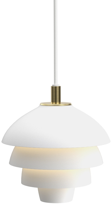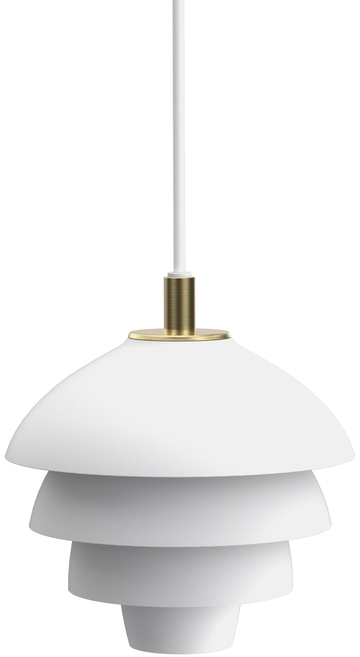 Die charakteristische Form mit der Messingspitze symbolisiert den Stiel der Weintraube und bildet einen wunderschönen Kontrast zur matten weißen Oberfläche. Diese Kombination aus echtem Messing und der eleganten weißen Finish verleiht der Leuchte einen exklusiven und zeitlosen Ausdruck, der perfekt in moderne skandinavische Zuhause passt. Das diffuse Licht verbreitet sich sanft und warm durch den Raum und schafft die ideale Beleuchtung für gesellige Zusammenkünfte und entspannte Momente.