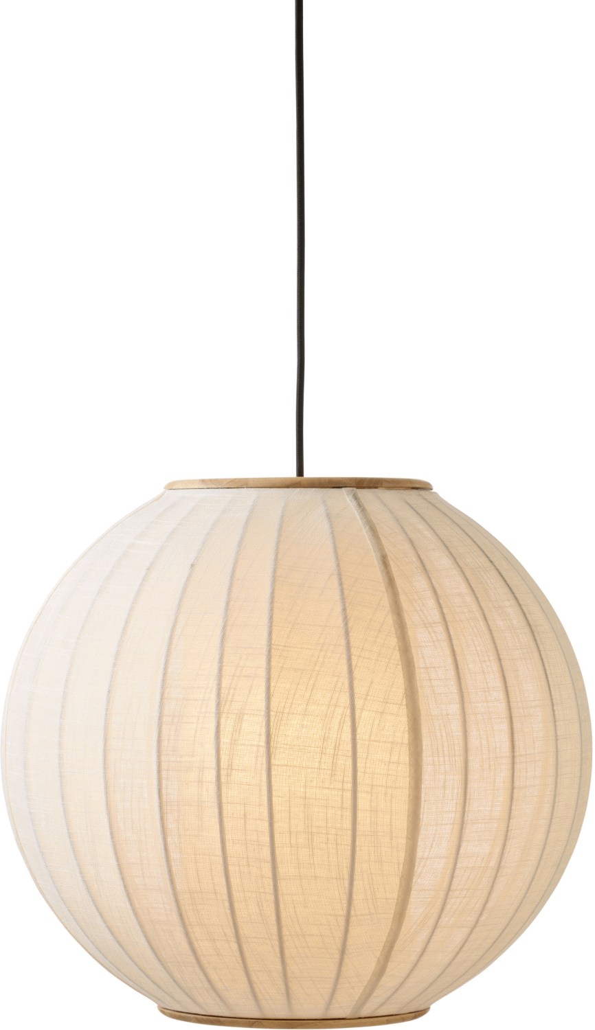 Die charakteristische Ballonform aus weißem Textil verleiht der Leuchte einen sanften und raffinierten Ausdruck. Besonders beeindruckend sind die handwerklichen Details aus massivem Holz, die sowohl an der Oberseite als auch am unteren Ende der Pendelleuchte angebracht sind. Diese natürlichen Akzente bilden einen warmen Kontrast zum weißen Textil und unterstreichen das skandinavische DNA der Leuchte perfekt.