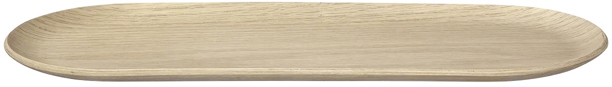 Die organische Form und die natürliche Materialwahl spiegeln die skandinavische Designtradition wider, in der Funktionalität und Ästhetik Hand in Hand gehen. Das Tablett wird aus hochwertigem Sperrholz gefertigt, wobei Qualität und Langlebigkeit im Fokus stehen. Dank der LFGB-Zertifizierung ist es für den direkten Kontakt mit Lebensmitteln geeignet, was es ideal für das Servieren und Präsentieren von Speisen macht.