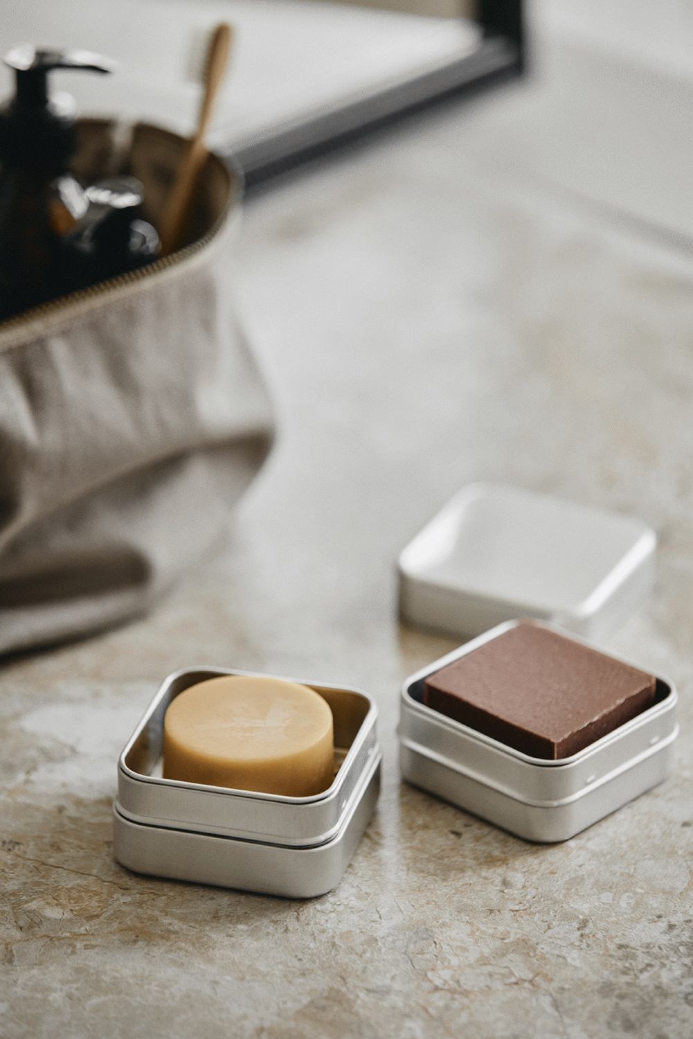 Mit diesem durchdachten Reisebehälter von Amalie Rosalie bringst du skandinavische Funktionalität und umweltbewusstes Design perfekt in Einklang. Der aus 100% Aluminium gefertigte Behälter besteht aus drei intelligent konzipierten Teilen: Deckel, Boden und einem innovativen Seifengitter, das die optimale Aufbewahrung deiner festen Körper- und Haarpflegeprodukte gewährleistet.Das clevere dreiteilige Design macht diesen Behälter besonders praktisch für Reisen. Das integrierte Seifengitter hebt deine Seife oder Shampoo-Bar vom Boden ab, sodass das Produkt richtig trocknen kann und seine Qualität länger bewahrt. Wenn du im Urlaub oder im Ferienhaus bist, funktioniert dasselbe Gitter als praktische Seifenschale – das macht den Behälter noch vielseitiger.