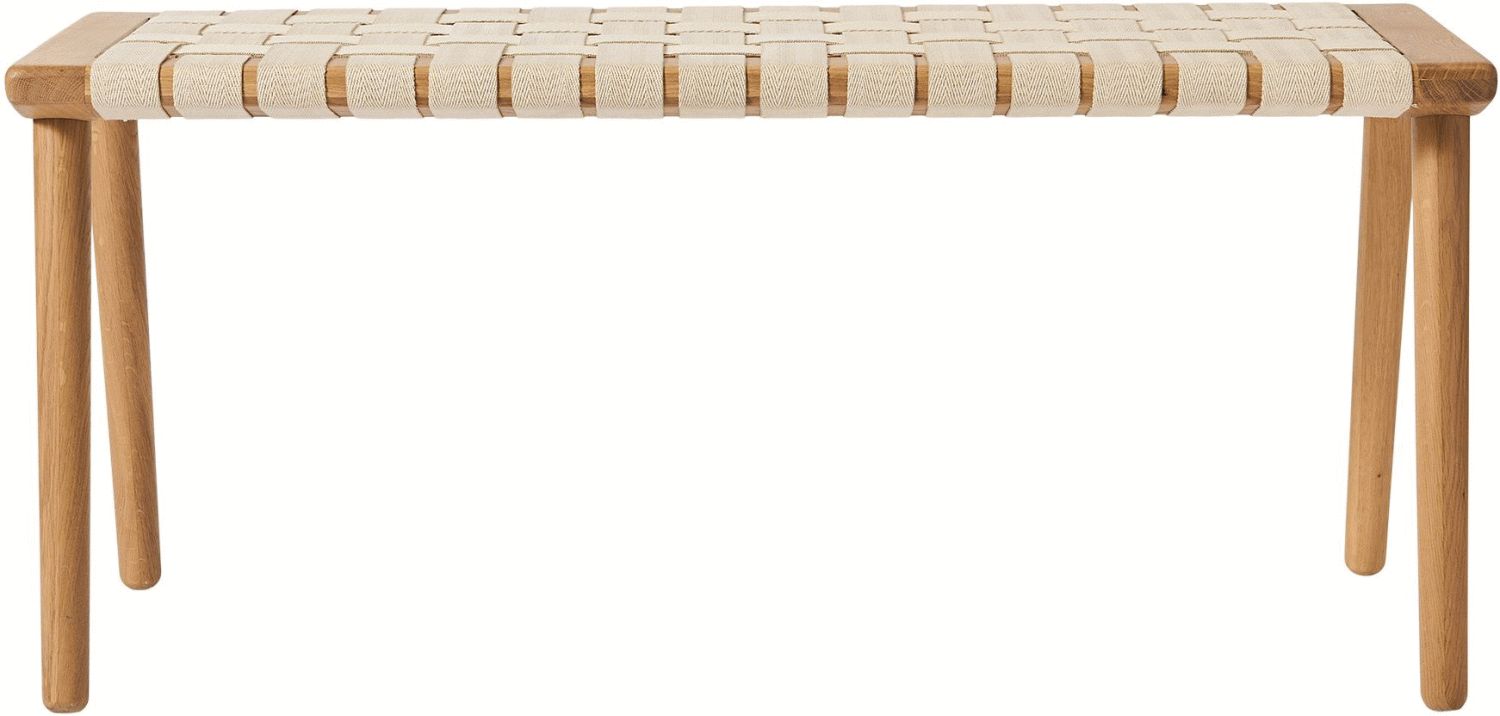 Diese 100 cm lange Sitzbank von Andersen Furniture vereint skandinavische Handwerkstradition mit moderner Funktionalität und schafft dabei ein elegantes Möbelstück, das sich nahtlos in jedes Zuhause einfügt. Designer Allan Nøddebo hat bei der Entwicklung der Seat Bank besonderen Wert auf die Kombination aus Komfort und Ästhetik gelegt, wodurch massives Eichenholz auf ein sanft geflochtenes Sitzkissen aus ÖkoTex-zertifizierter Baumwolle trifft.Das charakteristische Eichenholz präsentiert seine natürlichen Strukturen und warmen Nuancen in ihrer vollen Pracht, während die weißpigmentierte Lackierung der Bank ein zeitloses Finish verleiht, das harmonisch mit verschiedenen Einrichtungsstilen verschmilzt. Das geflochtene Sitzkissen fügt nicht nur eine taktile Dimension hinzu, sondern gewährleistet auch optimalen Sitzkomfort während der Nutzung. Die breiten, geflochtenen Details schaffen einen wunderschönen Kontrast zum soliden Holzgestell und unterstreichen den sophistizierten Ausdruck der Bank.