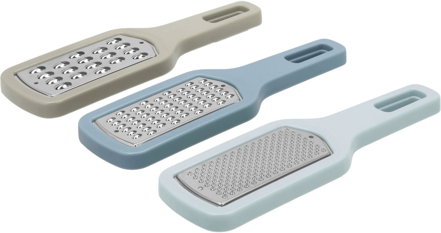 - Set mit drei Reiben in verschiedenen Schneidgrößen: grob, mittel und fein