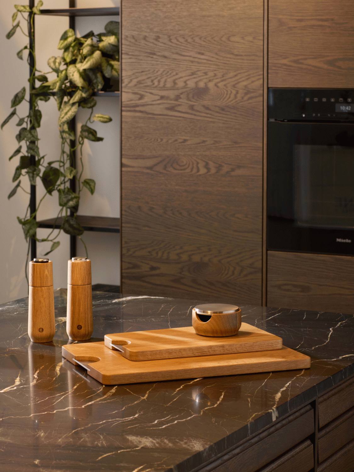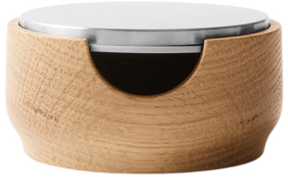 Das FSC-zertifizierte Eichenholz unterstreicht das nachhaltige Profil des Produkts, während die Edelstahlkomponente Langlebigkeit und Hygiene gewährleistet. Das Design von CrushGrind in Zusammenarbeit mit Sam Murley spiegelt skandinavische Designtradition mit Fokus auf Funktionalität und zeitlose Eleganz wider.