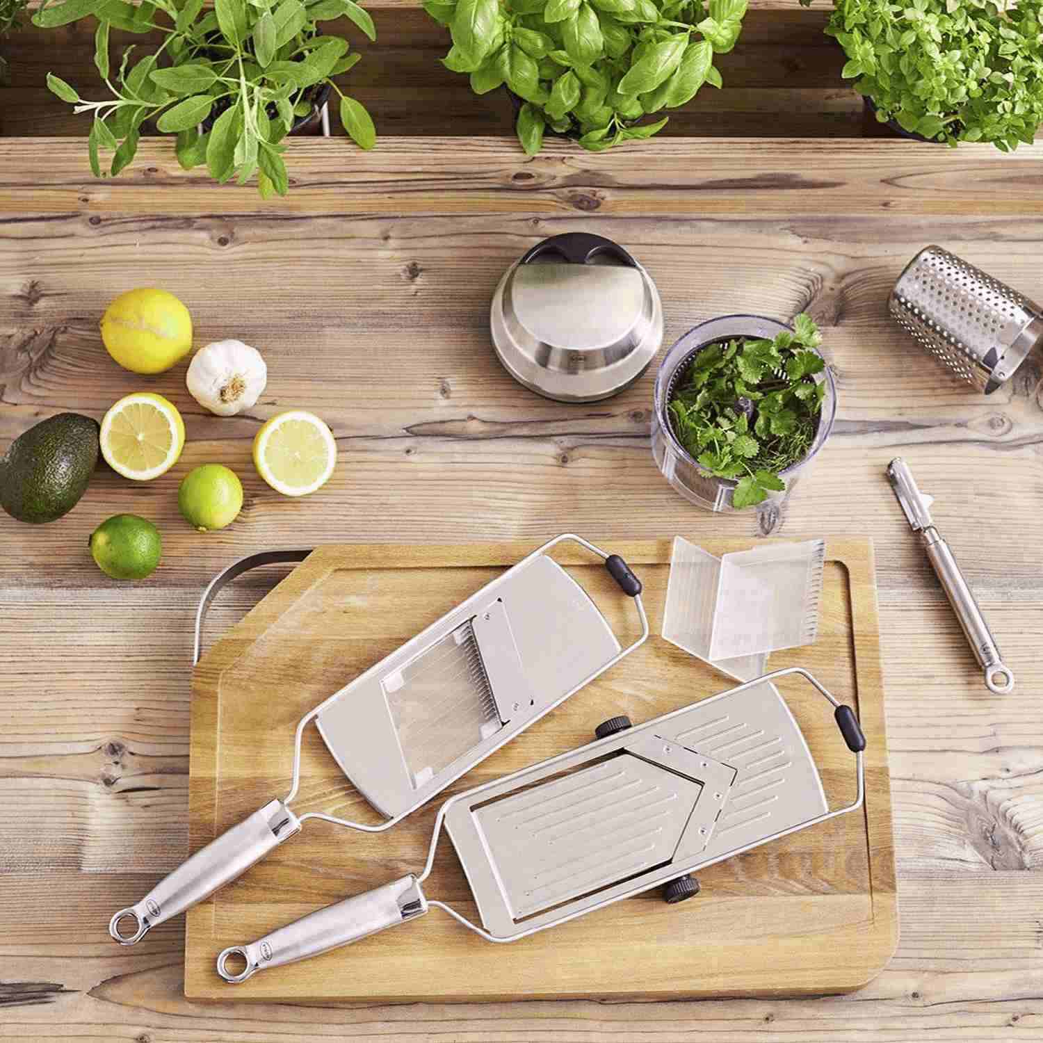 - Inklusive Gemüseschlitten für sicheres Schneiden