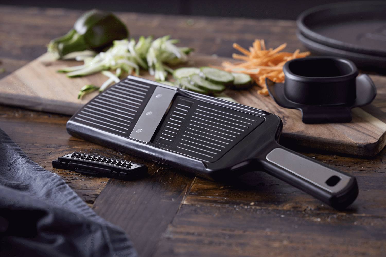 Dieses vielseitige Mandolineneisen ermöglicht dir den einfachen Wechsel zwischen zwei speziell entwickelten Klingen – eine für perfekte Scheiben von Gemüse und Obst, eine weitere für gleichmäßige Streifen wie beim Julienne-Schnitt. Die intuitive Einstellschraube auf der Rückseite gibt dir vollständige Kontrolle über die Dicke, sodass du die Schnitte präzise nach den Anforderungen deines Rezepts oder deinen persönlichen Vorlieben anpassen kannst.