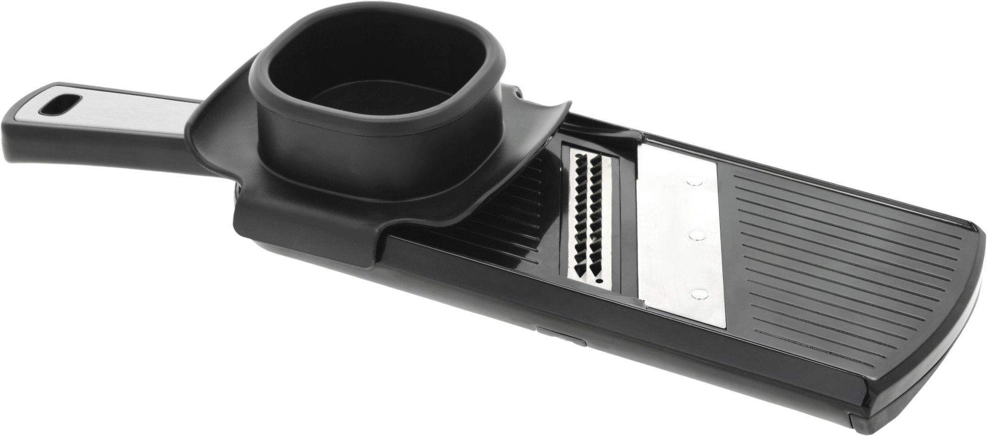 Mit diesem HOLM Mandolineneisen holst du dir professionelle Präzision in deine heimische Küche. Die durchdachte Konstruktion in Schwarz und Stahl vereint Funktionalität mit Sicherheit, sodass du gleichmäßige Scheiben und Streifen für sowohl Alltagsgerichte als auch Gourmet-Mahlzeiten kreieren kannst. Die elegante Kombination aus schwarzem Finish und Stahl fügt sich wunderbar in jede moderne Küche ein, wo Ästhetik und Benutzerfreundlichkeit gleichermaßen geschätzt werden.Dieses vielseitige Mandolineneisen ermöglicht dir den einfachen Wechsel zwischen zwei speziell entwickelten Klingen – eine für perfekte Scheiben von Gemüse und Obst, eine weitere für gleichmäßige Streifen wie beim Julienne-Schnitt. Die intuitive Einstellschraube auf der Rückseite gibt dir vollständige Kontrolle über die Dicke, sodass du die Schnitte präzise nach den Anforderungen deines Rezepts oder deinen persönlichen Vorlieben anpassen kannst.