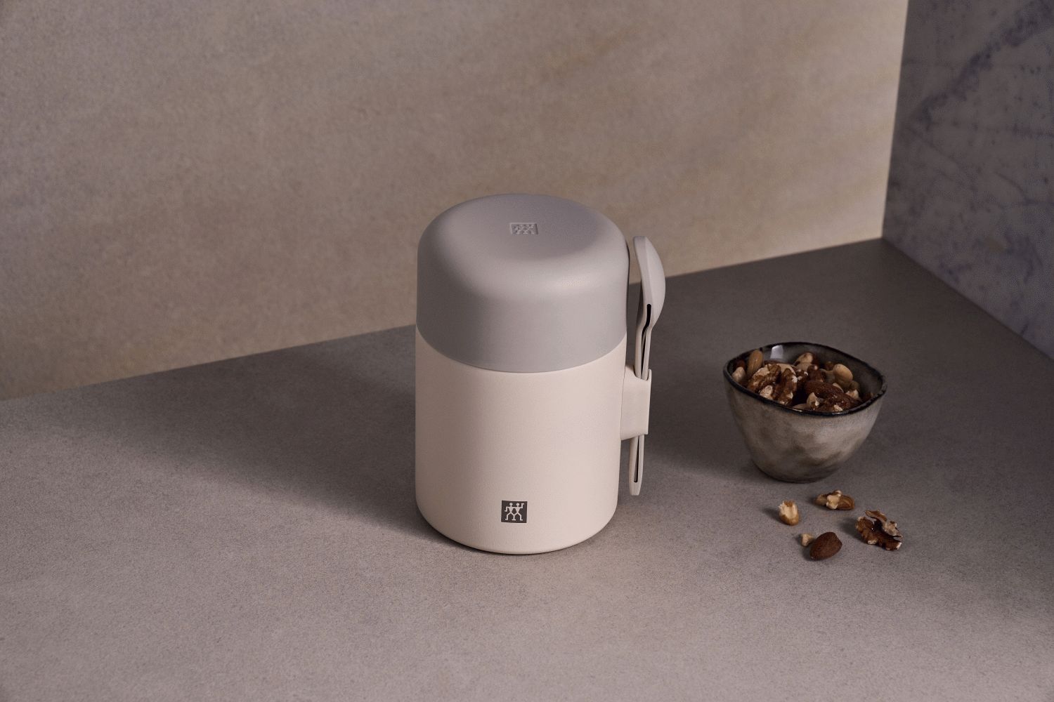 Mit dem Zwilling Thermo Plus Kochtopf in zartem Creme bringst du Funktionalität und stilvolles Design in deinen Alltag. Dieser praktische Thermobehälter aus hochwertigem Edelstahl ist perfekt für alle, die unterwegs nicht auf frische, gut temperierte Mahlzeiten verzichten möchten – ob im Büro, nach dem Sport oder bei Outdoor-Aktivitäten. Das großzügige Fassungsvermögen von 600 ml bietet ausreichend Platz für vielfältige Gerichte wie Suppen, Pasta, Salate, Bowls oder Joghurt mit Toppings.Dank der fortschrittlichen Thermofunktion bleibt dein Essen bis zu 10 Stunden lang warm oder kalt, sodass du deine Mahlzeiten genau so genießen kannst, wie sie sein sollen – frisch und in optimaler Temperatur. Das robuste Edelstahlmaterial garantiert Langlebigkeit und Widerstandsfähigkeit im täglichen Gebrauch, während das cremefarbene Finish dem Behälter eine elegante, zeitlose Optik verleiht, die sich harmonisch in jede Umgebung einfügt.