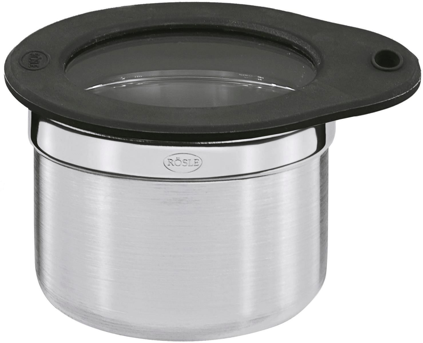 Diese hochwertige Aufbewahrungsbox von Rösle vereint deutsche Präzision mit skandinavischem Design und bringt Ordnung in dein Küchenchaos. Mit ihrem eleganten Edelstahlkorpus und dem durchsichtigen Glasdeckel fügt sie sich nahtlos in jede moderne Kücheneinrichtung ein, während sie gleichzeitig höchste Funktionalität bietet.Das durchdachte Design dieser 0,3-Liter-Box macht sie zum idealen Begleiter für die Aufbewahrung kleinerer Mengen deiner Lieblingszutaten. Der rostfreie Edelstahl garantiert nicht nur eine lange Lebensdauer, sondern bewahrt auch den ursprünglichen Geschmack deiner Lebensmittel ohne jegliche Beeinträchtigung. Das klare Glasdeckel ermöglicht dir einen schnellen Überblick über den Inhalt, während die schwarze Silikonkante eine luftdichte Versiegelung schafft, die deine Vorräte optimal frisch hält.