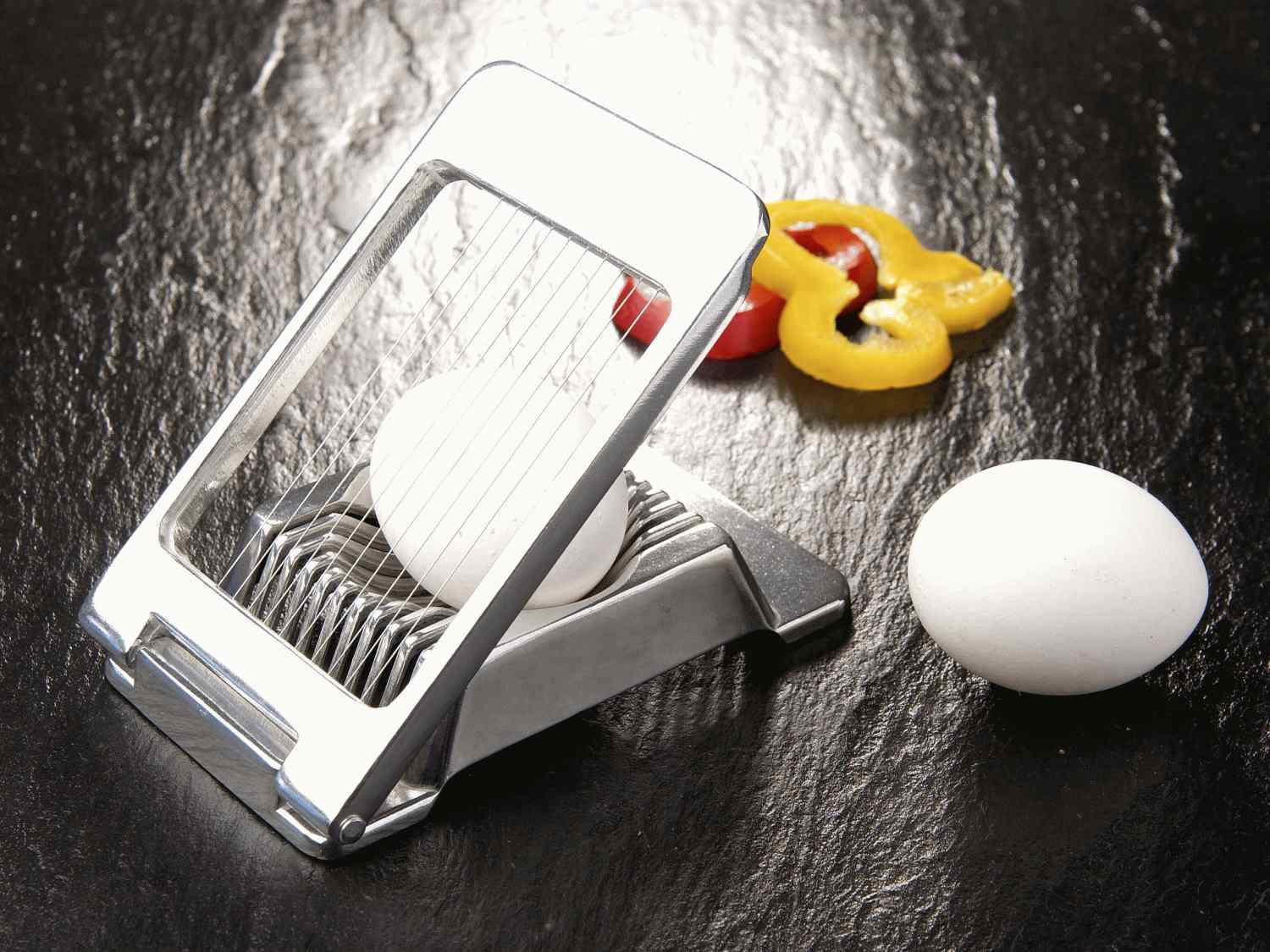 - Erzeugt gleichmäßige Eierscheiben mit einem einzigen Druck