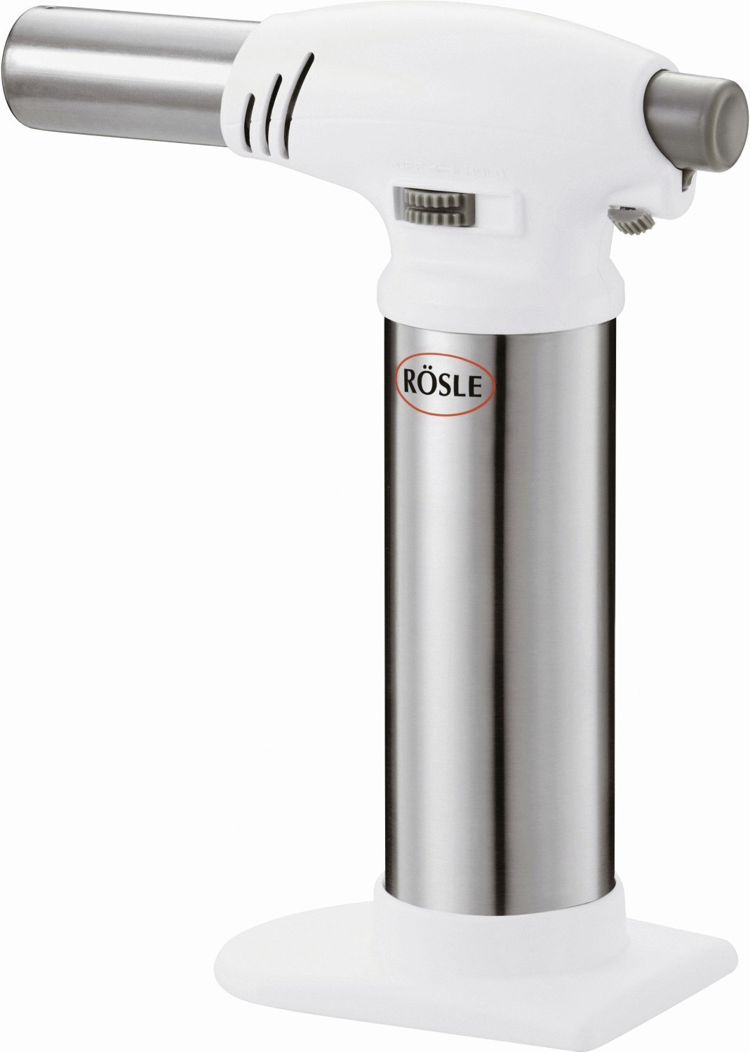 Rösle hat bei diesem Gasbrenner besonders an die Sicherheit gedacht: Die integrierte Kindersicherung verhindert unbeabsichtigte Aktivierung - ein wichtiges Detail für jeden Haushalt. Das elegante Design in Stahl und Weiß fügt sich harmonisch in moderne Küchen ein, während die kompakte Größe von 17 cm eine platzsparende Aufbewahrung ermöglicht.