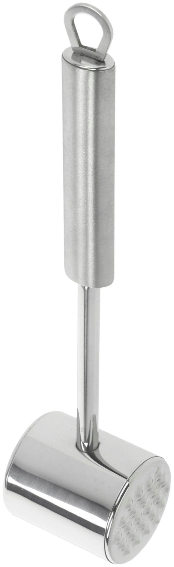 Mit diesem professionellen Fleischhammer aus der Funktion-Serie holst du dir echte Küchenprofi-Qualität in dein Zuhause. Der 27 cm lange Fleischhammer aus hochwertigem Edelstahl überzeugt durch seine durchdachte Konstruktion und außergewöhnliche Langlebigkeit, die selbst intensiver Nutzung mühelos standhält.Das ausgewogene Gewicht und der ergonomisch geformte Griff sorgen für perfekte Balance und optimale Kontrolle bei der Fleischzubereitung. Du wirst sofort spüren, wie angenehm der Hammer in der Hand liegt und wie präzise du arbeiten kannst. Das intelligente doppelseitige Hammerkopf-Design macht dieses Werkzeug besonders vielseitig: Die glatte Seite eignet sich hervorragend zum schonenden Formen von Fleisch, ohne die Fasern zu beschädigen, während die strukturierte Seite mit Knopfmuster selbst die zähesten Fleischstücke effektiv zart klopft.