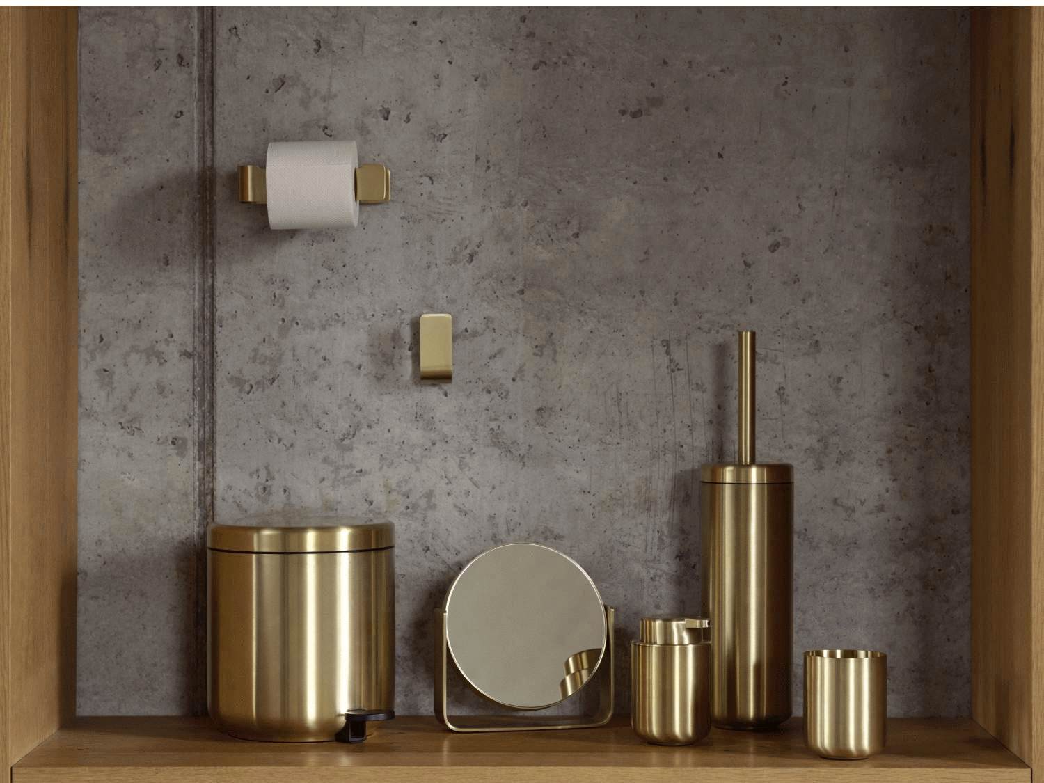 Mit diesem eleganten Toilettenpapierhalter aus der Ume-Serie von Zone Denmark bringst du skandinavische Raffinesse in dein Badezimmer. Die charakteristische matte Messingoberfläche verleiht dem Halter einen sophistizierten und warmen Ausdruck, der harmonisch mit verschiedenen Einrichtungsstilen verschmilzt und einen Hauch von Luxus in dein Badezimmer zaubert.Das organische, u-förmige Design stammt aus der Zusammenarbeit mit dem renommierten Designteam VE2 und verkörpert die weichen, natürlichen Formen, die die gesamte Ume-Serie auszeichnen. Die durchdachte Konstruktion ermöglicht dir einen mühelosen Wechsel der Toilettenpapierrollen, während die versteckten Befestigungen für einen sauberen, minimalistischen Look an der Wand sorgen.