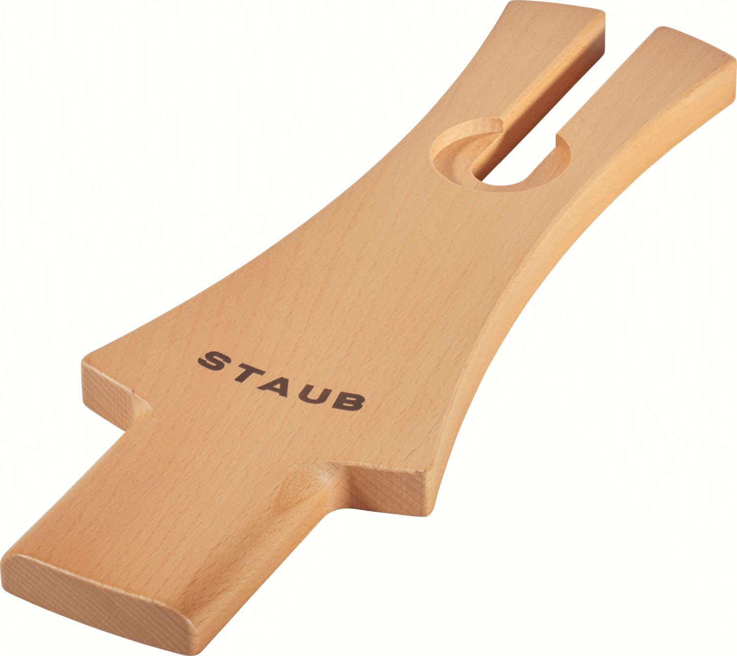 Dieser praktische Holzdeckelhalter von Staub revolutioniert deine Kocherfahrung mit gusseisernen Cocotten und Braisern. Das durchdachte Design aus hochwertigem Buchenholz bietet dir optimale Kontrolle und Sicherheit beim Umgang mit heißen Deckeln und macht das Kochen mit deinem wertvollen Staub-Kochgeschirr noch angenehmer.Die intelligente Konstruktion des Deckelhalters ermöglicht eine mühelose Handhabung selbst der heißesten Deckel. Du platzierst einfach die Ferse des Halters im Griff deiner Cocotte oder deines Braisers und setzt den Deckel vorsichtig zwischen die "Gabeln" des Halters. Der Deckelknauf ruht perfekt in der kreisförmigen Vertiefung und gewährleistet so eine stabile und sichere Positionierung während des gesamten Kochvorgangs.