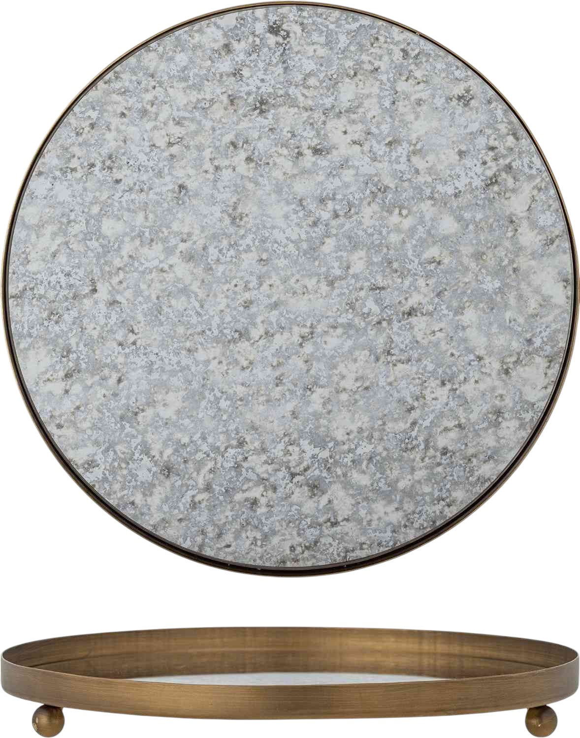 Mit der Bloomingville Glacier Servierplatte holst du dir ein wahres Luxusstück ins Haus, das durch seine charakteristische goldene Oberfläche und das raffinierte Design sofort alle Blicke auf sich zieht. Diese wunderschöne Metallplatte wurde geschaffen, um als Statement-Piece zu fungieren, das Licht einfängt und eine warme, einladende Atmosphäre in jeder Einrichtung schafft.Besonders beeindruckend sind die kleinen kugelförmigen Füße, die die Platte elegant von der Oberfläche abheben und einen schwebenden Effekt erzeugen. Der dekorative Spiegeleffekt im Boden reflektiert das Licht auf eine Weise, die deinem Raum zusätzliche Tiefe und Dimension verleiht. Diese durchdachte Designdetail macht die Platte zu mehr als nur einem praktischen Accessoire – sie wird zu einem Kunstwerk für sich.