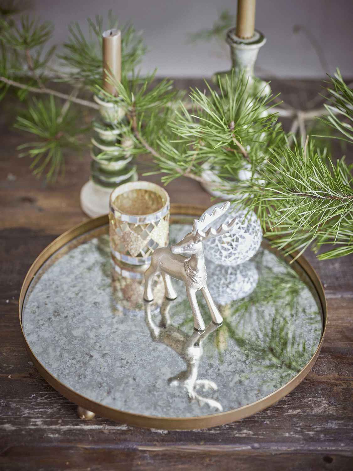 Die Glacier Servierplatte zeigt sich unglaublich vielseitig und lässt sich das ganze Jahr über auf verschiedenste Weise einsetzen. Als Basis für Kerzen schafft sie eine romantische Stimmung, während sie als dekoratives Element die Schönheit der jeweiligen Jahreszeit hervorhebt – von den warmen Herbstfarben bis hin zum festlichen Weihnachtsschmuck. Die zeitlose goldene Oberfläche sorgt dafür, dass die Platte perfekt zu modernen wie klassischen Einrichtungsstilen passt.