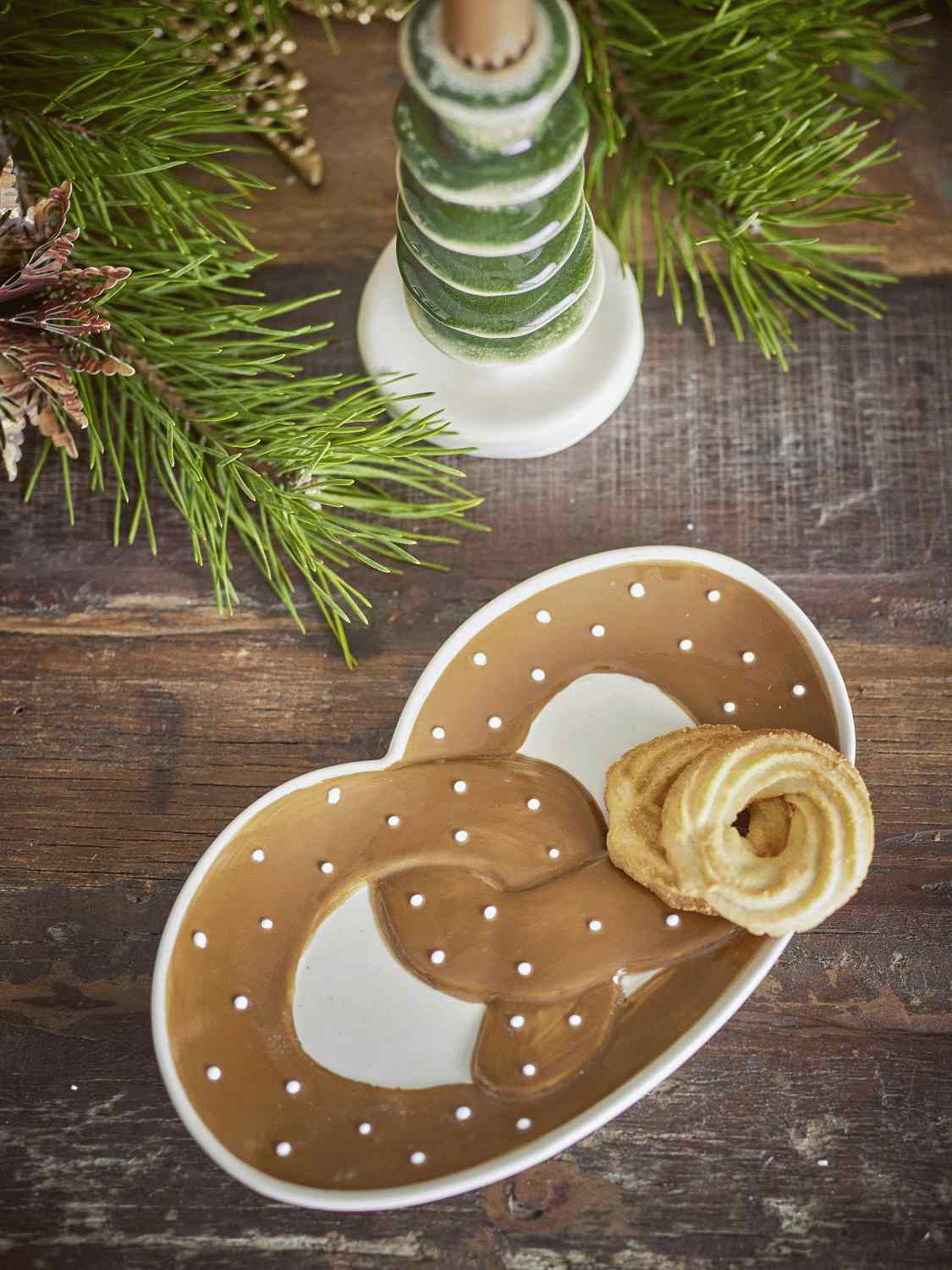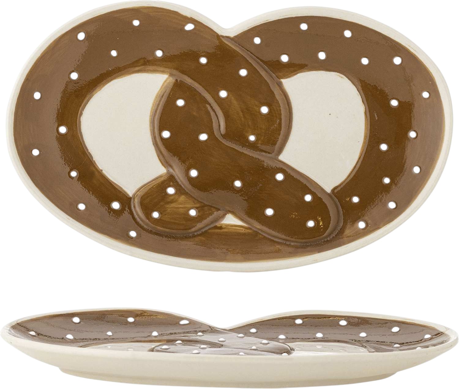 Mit dieser charmanten Servierplatte von Bloomingville holst du dir ein handbemaltes Kunstwerk direkt auf deinen Tisch. Das verspielte Brezel-Motiv auf robustem Steinzeug verleiht deinem Zuhause sofort eine persönliche Note und sorgt für Gesprächsstoff bei jedem Anlass. Die warme braune Farbgebung fügt sich harmonisch in die skandinavische Designtradition ein und schafft eine gemütliche, erdverbundene Atmosphäre.Jede Servierplatte ist ein Unikat, da das charakteristische Brezel-Motiv sorgfältig von Hand bemalt wird. Diese kunstvolle Handarbeit verleiht jedem Stück den authentischen Charme selbstgemachter Keramik und macht deine Platte zu einem besonderen Einzelstück. Die Liebe zum Detail spiegelt sich in jeder Pinselführung wider und zeigt Bloomingvilles Engagement für hochwertige Handwerkskunst.