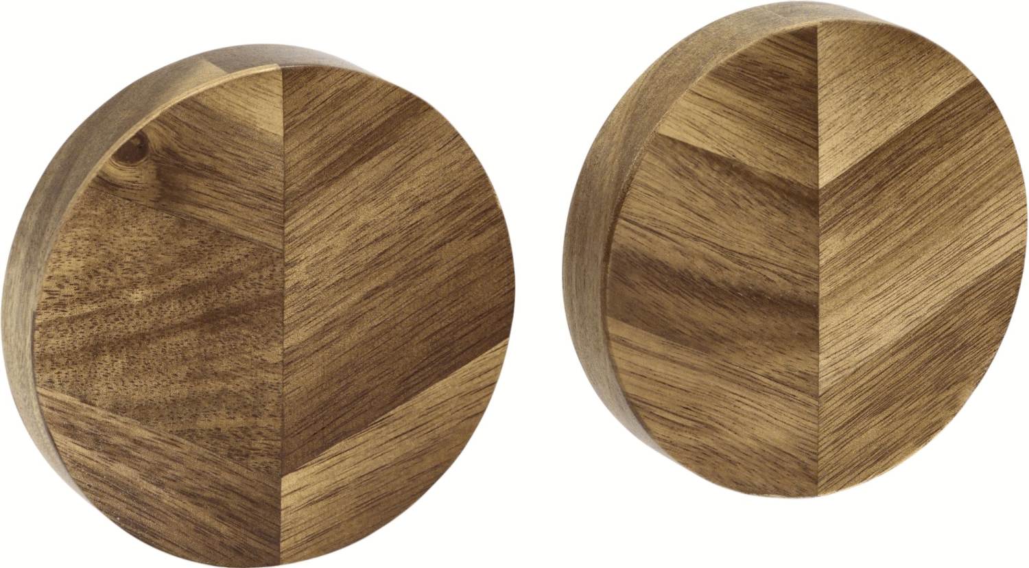 Mit diesem praktischen 2er-Set Messermagnete von HOLM bringst du skandinavische Designqualität und durchdachte Funktionalität in deine Küche. Die aus FSC-zertifiziertem Akazienholz gefertigten Magnete überzeugen mit ihrem charakteristischen Fischgrätmuster, das jedem Stück eine einzigartige Note verleiht und perfekt zu modernen wie traditionellen Kücheneinrichtungen passt.Das warme Akazienholz mit seiner natürlichen Maserung schafft eine einladende Atmosphäre in deiner Küche, während die kraftvolle Magnetfunktion dafür sorgt, dass deine Messer sicher und griffbereit an der Wand befestigt bleiben. Mit einem Durchmesser von 9 cm und einer Dicke von 2 cm bietet jeder Magnet ausreichend Platz für ein bis zwei Messer und hilft dir dabei, wertvollen Schubladenplatz zu sparen.