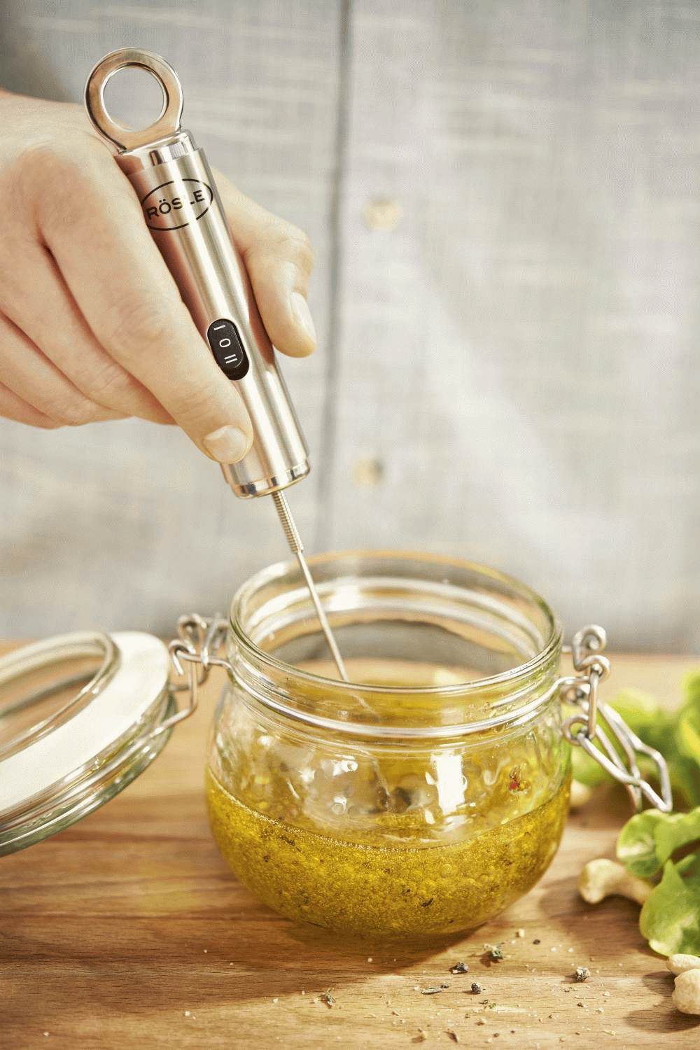 Mit diesem hochwertigen Multischäumer von Rösle verwandelst du deine Küche in eine kleine Barista-Station und zauberst perfekten Milchschaum für deinen morgendlichen Cappuccino oder cremige Saucen für das Abendessen. Das 23 cm lange Gerät aus robustem Edelstahl vereint deutsche Ingenieurskunst mit zeitlosem skandinavischem Design und wird schnell zu deinem unverzichtbaren Küchenhelfer.Die innovative Dual-Speed-Technologie gibt dir vollständige Kontrolle über jeden Schäumvorgang. Wählst du die schnelle Einstellung, erhältst du in Sekunden den perfekten Milchschaum für deinen Kaffee oder cremige Milkshakes für zwischendurch. Die langsame Einstellung eignet sich hervorragend für seidenweiche Vinaigrettes oder das Emulgieren von Saucen - so gelingen dir professionelle Ergebnisse wie vom Sternekoch.