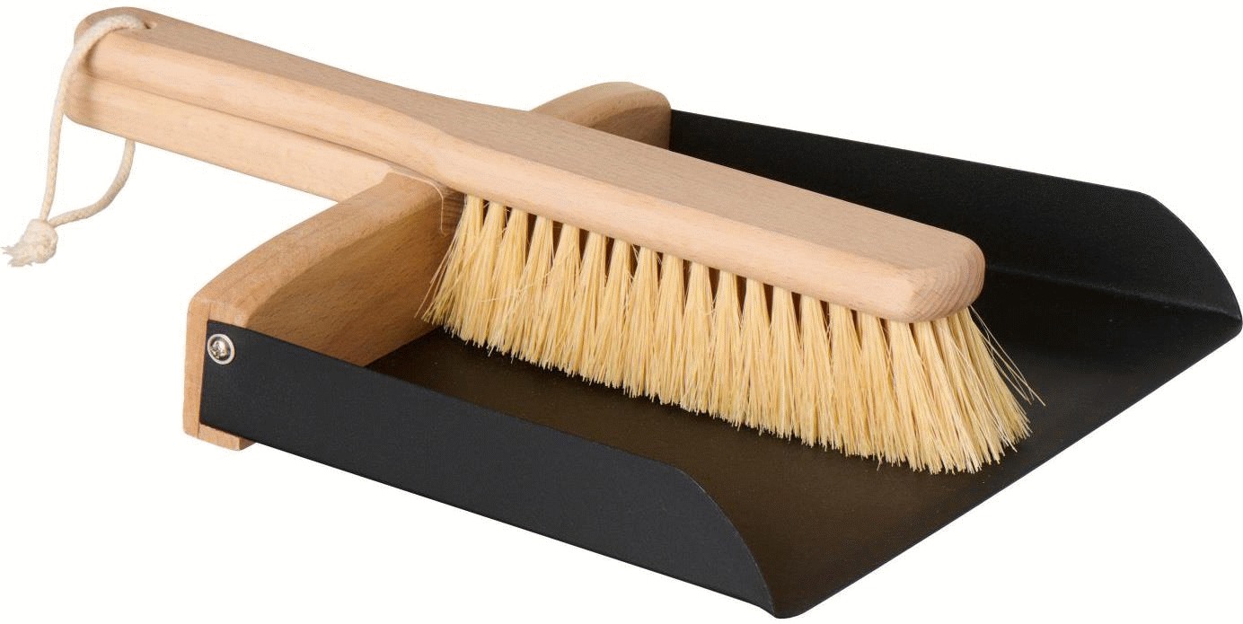 - Kehrschaufel aus robustem Metall mit passendem Buchenbesen