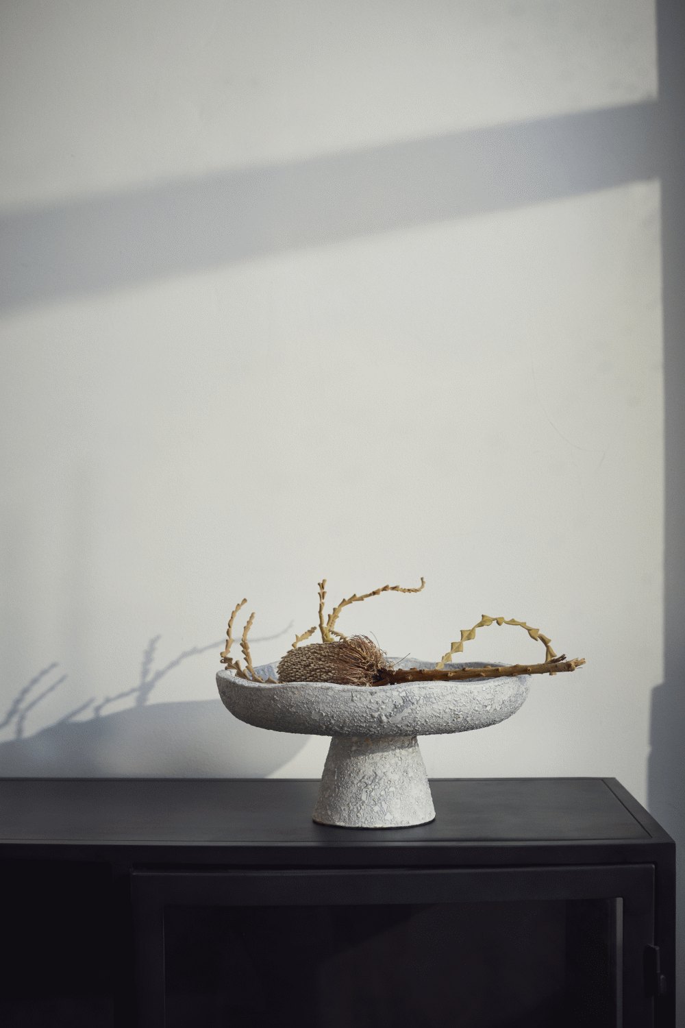 Mit der Luna Schale auf Fuß von Muubs holst du dir ein faszinierendes Kunstwerk ins Zuhause, das durch sein skulpturales Design sofort alle Blicke auf sich zieht. Diese charaktervolle Schale in grauen Nuancen wurde von der mystischen Mondoberfläche und den organischen Bewegungen der Natur inspiriert und bringt eine sophisticated Dimension in jede Einrichtung.Die handgeformte Terrakotta-Konstruktion mit reaktiver Glasur sorgt dafür, dass jede Schale ihren ganz eigenen Ausdruck und ihr individuelles Finish erhält. Durch die reaktive Glasur entstehen natürliche Variationen im Farbton, wodurch deine Luna Schale zu einem einzigartigen Kunstwerk wird. Das organische Design mit seinen weichen, wellenförmigen Formen erinnert an die natürlichen Bewegungen des Wassers und schafft eine harmonische Balance zwischen dem erdigen Material und der eleganten Formgebung.