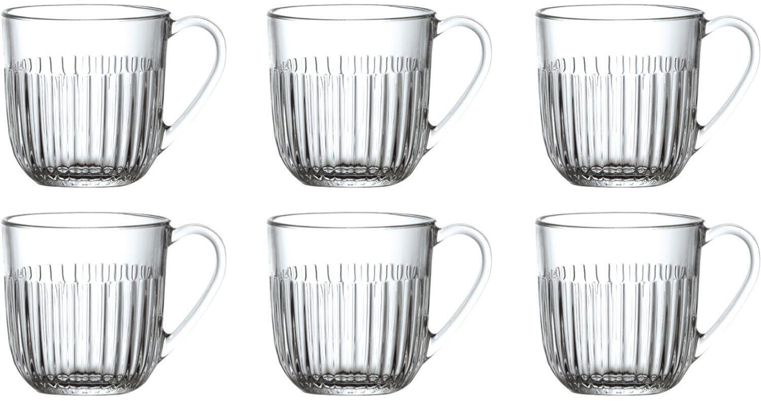 Mit diesen sechs eleganten Gläsern mit Henkel aus der Ouessant-Serie holst du dir ein Stück französische Eleganz direkt in dein Zuhause. La Rochère, eine der ältesten Glasmanufakturen Frankreichs, vereint in dieser Kollektion jahrhundertealte Handwerkskunst mit modernem Design und schafft dabei Glaswaren von außergewöhnlicher Qualität.Die geprägte Linienführung und das schlanke Profil verleihen jedem Glas einen besonderen Glanz und Charakter, der perfekt zum skandinavischen Wohnstil passt. Mit einem Fassungsvermögen von 27 cl eignen sich diese vielseitigen Gläser ideal für warme und kalte Getränke – ob für den täglichen Gebrauch oder wenn Gäste zu Besuch kommen.