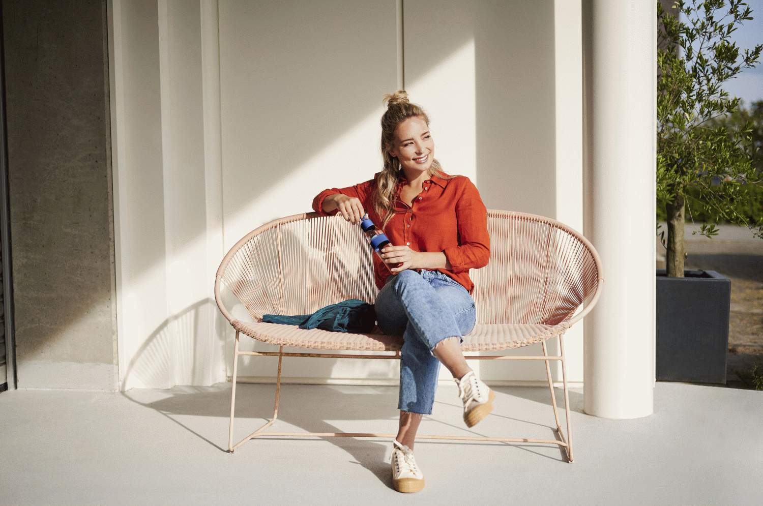 Das durchdachte Design zeichnet sich durch den charakteristischen elastischen "Bauchgürtel" aus, der der Flasche nicht nur ihr unverwechselbares Aussehen verleiht, sondern auch einen sicheren Halt gewährleistet – selbst mit nassen Händen. Die praktische Schlaufe im Deckel ermöglicht es dir, die Flasche bequem zu transportieren oder an deiner Tasche zu befestigen.