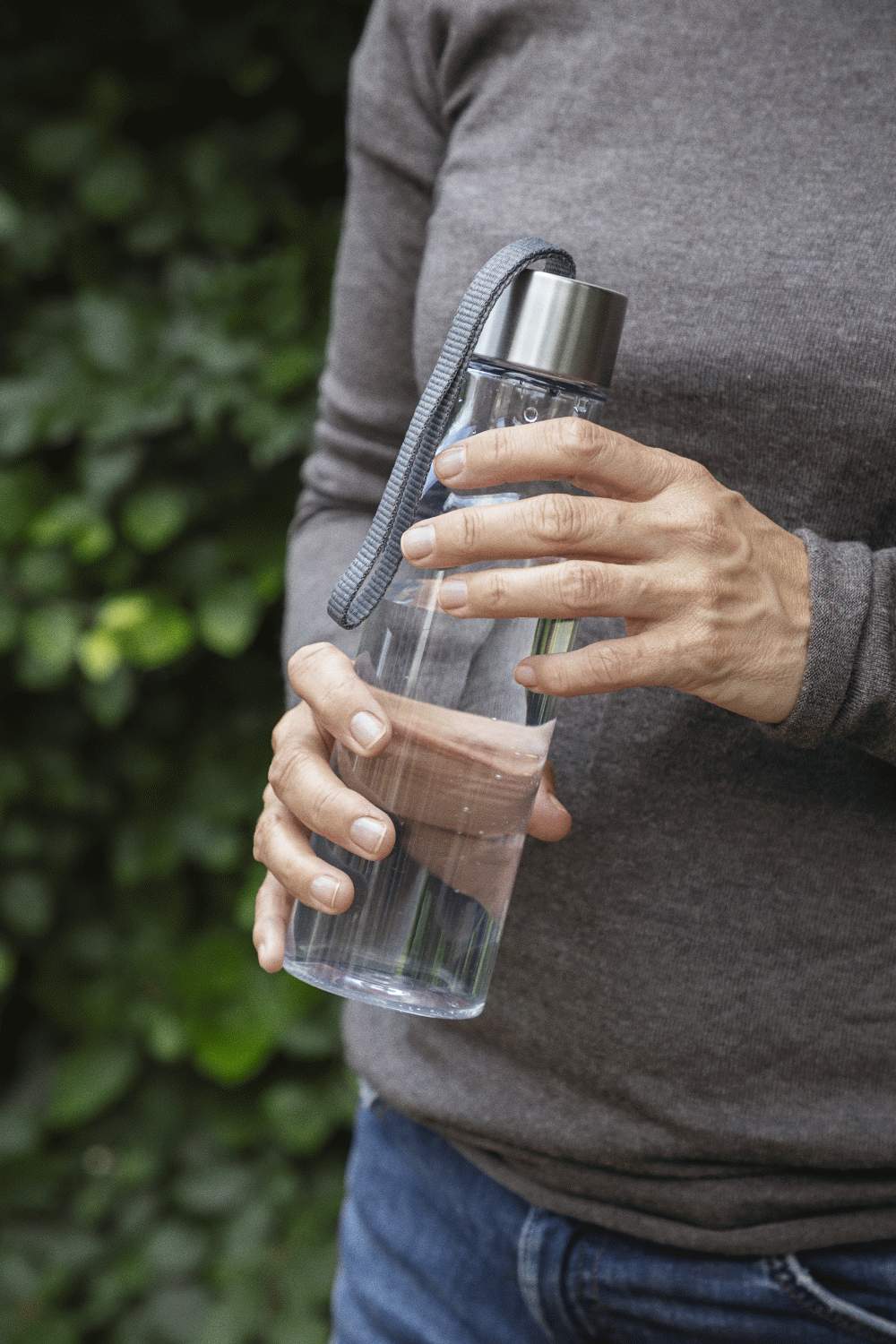 Mit der Eva Solo RE-Hydrate Wasserflasche triffst du eine bewusste Entscheidung für Nachhaltigkeit, ohne dabei auf Funktionalität und skandinavisches Design zu verzichten. Diese durchsichtige 0,5-Liter-Flasche besteht zu 100 % aus recyceltem Post-Consumer-Kunststoff und zeigt eindrucksvoll, wie umweltfreundliche Materialien zu hochwertigen Alltagsprodukten werden können.Das kompakte Design macht diese Wasserflasche zum idealen Begleiter für unterwegs – sie passt mühelos in deine Handtasche, den Getränkehalter im Auto oder den Picknickkorb. Der praktische Tragegriff ermöglicht es dir, die Flasche bequem zu transportieren, während du beide Hände frei hast. Das Schraubverschluss aus rostfreiem Stahl sorgt für einen vollständig dichten Verschluss, sodass du dir keine Sorgen über Lecks oder nasse Überraschungen machen musst.