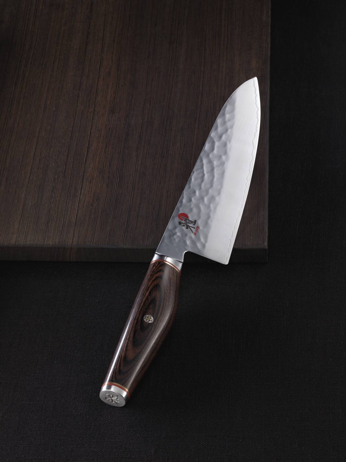 Die Griffe sind aus exklusivem Cocobolo-Holz gefertigt, einem erstklassigen Material, das für seine natürliche Schönheit und ergonomischen Eigenschaften geschätzt wird. Das charakteristische Mosaikemblem auf jedem Griff fungiert sowohl als Designelement als auch als Qualitätssiegel und unterstreicht MIYABIs Hingabe zur handwerklichen Perfektion.