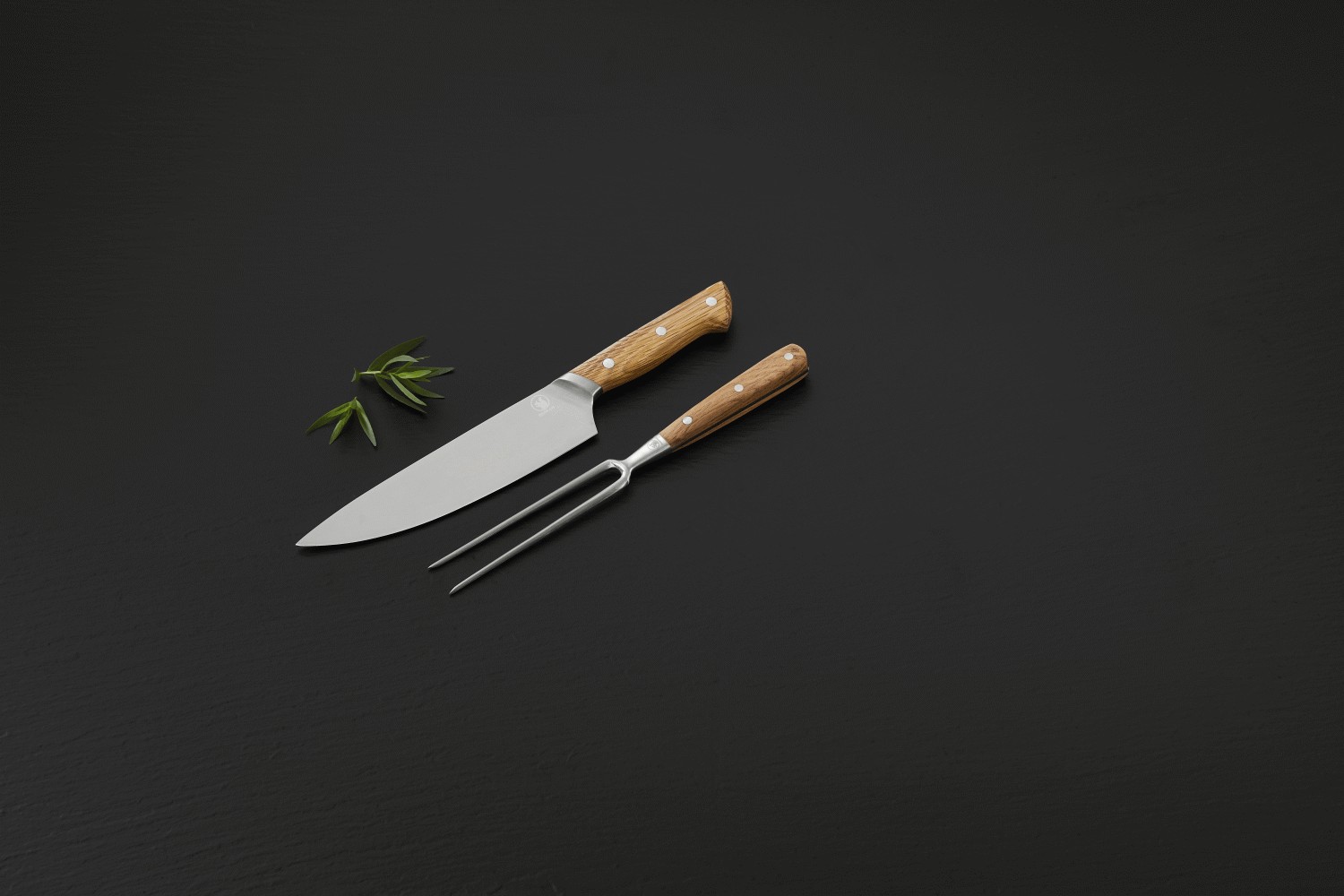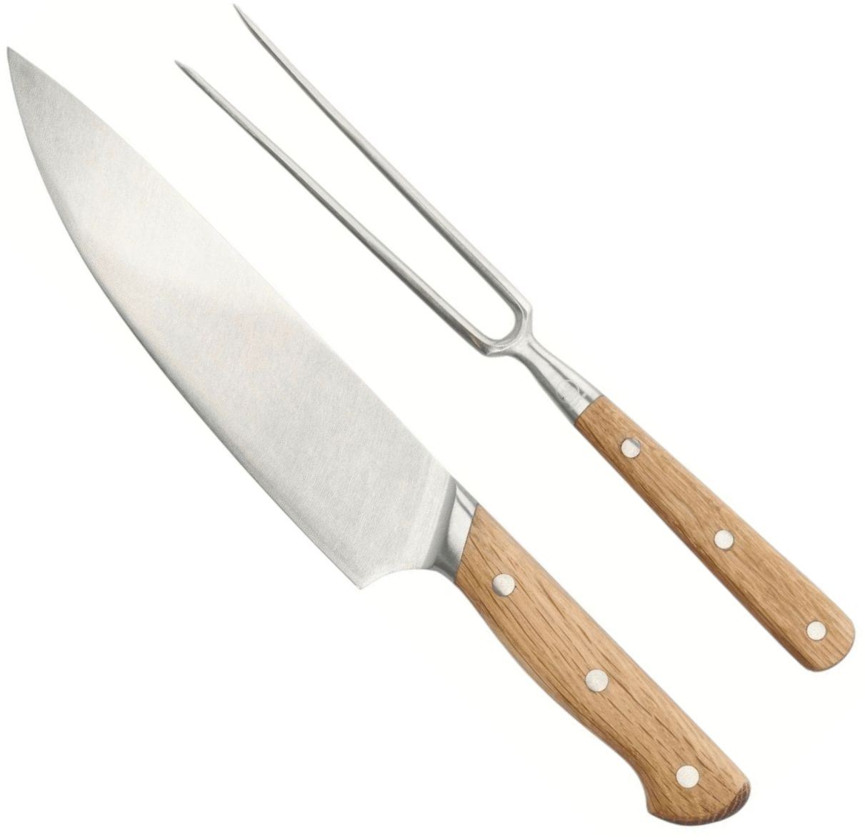 Klinge und Gabelzinken bestehen aus erstklassigem rostfreiem Edelstahl, der präzise Schnitte und langanhaltende Schärfe garantiert. Die ergonomische Formgebung der Holzgriffe macht das Tranchieren zu einem angenehmen Erlebnis, selbst bei längerer Nutzung.