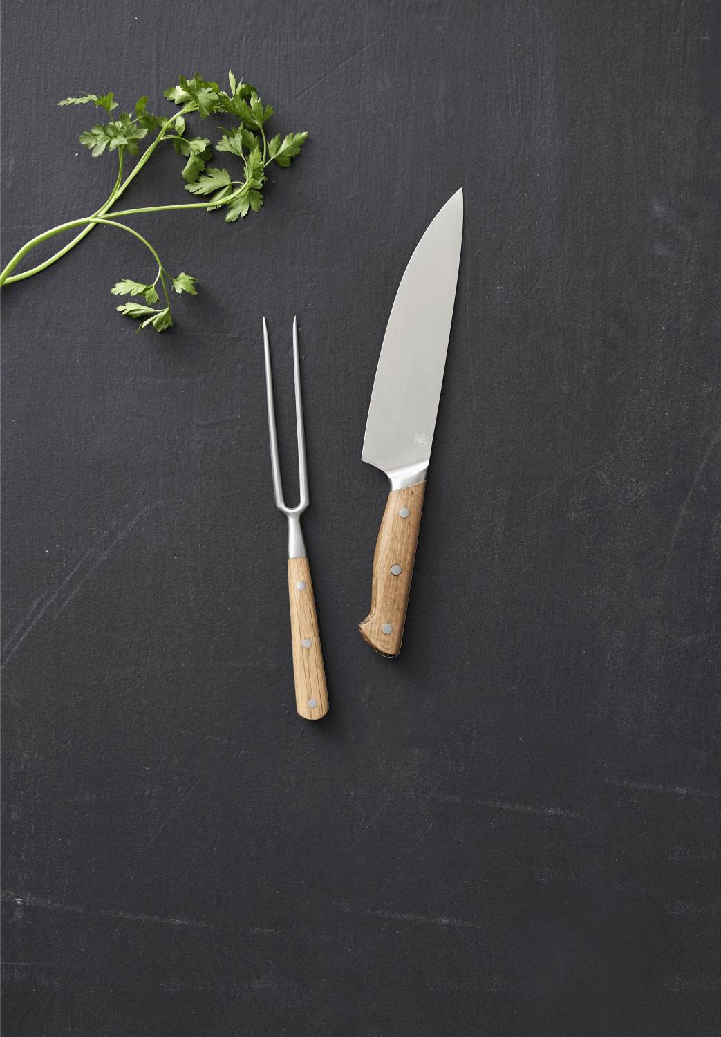 Mit diesem exquisiten Vorschneider-Set von Morsø Foresta holst du dir ein Stück skandinavische Designtradition in deine Küche, das klassisches Handwerk mit moderner Funktionalität perfekt vereint. Dieses elegante Set aus Tranchiergabel und Kochmesser wurde speziell für präzises Zerlegen von Fleisch, Geflügel und anderen Gerichten beim Servieren am Tisch entwickelt und richtet sich an alle Kochbegeisterten, die Wert auf hochwertige Küchenausstattung legen.Die robusten Griffe aus geöltem Eichenholz vermitteln sofort ein Gefühl von Qualität und bieten nicht nur sicheren Halt, sondern verleihen deinem Küchenequipment auch ein warmes, natürliches Element. Das Besondere an diesem Eichenholz: Es entwickelt mit der Zeit eine wunderschöne Patina, wodurch das Vorschneider-Set tatsächlich immer schöner wird, je häufiger du es verwendest. Diese ästhetische Reifung spiegelt Morsøs Verständnis für nachhaltiges Design wider, das mit seinem Nutzer mitwächst.